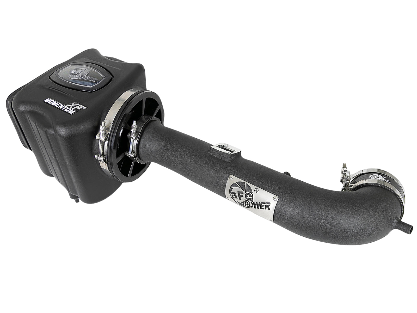 Momentum XP Cold Air Intake System w/ Pro 5R Filter Black Momentum XP Cold Air Intake System w/ Pro 5R Filter Black GM Silverado/Sierra 1500 14-19 / Tahoe/Suburban/Yukon/XL/Escalade 15-20 V8-5.3L/6.2L Unique One-Piece Housing with Sight Window:A custom computer designed housing eliminates the use of multiple components. It’s roto-molded and made from heat soak resistant cross-linked polyethylene, ensuring the coolest air intake charge possible. A clear sight window allows for filter inspection without removal of the airbox. The housing is designed to retain the same stock mounting points as the OE intake system for a hassle-free installation.Large 5-Layer Performance Air Filter:This Momentum XP intake system was designed around the largest filter possible to allow maximum performance and filtration. Its unique filter-to-housing interface (US PAT 9440175) not only makes for a simple installation, but also allows for a large inverted 3.8”x 9" air filter. The filter’s Pro 5R media features five progressively finer porosity cotton gauze layers that provide maximum airflow and performance. Mandrel-Bent Tubing:A one piece 3.5" mandrel-bent wrinkle-black powder-coated aluminum intake tube directs unrestricted airflow from the filter to the throttle body for more horsepower and torque. Premium Hardware:Premium stainless-steel t-bolt clamps provide the best corrosion resistance possible. Momentum XP intakes are designed with fewer parts for a quick and simple installation. Enjoy a custom look under the hood without compromising performance and quality with this Momentum XP Cold Air Intake System. It features a unique one-piece sealed housing and a stealthy powder-coated black aluminum intake tube. Built-in sight window provides easy filter inspection without disassembly Unique filter-to-housing interface for easy installation (US PAT 9440175) Enjoy lifelong performance with a washable and reusable Pro 5R air filter