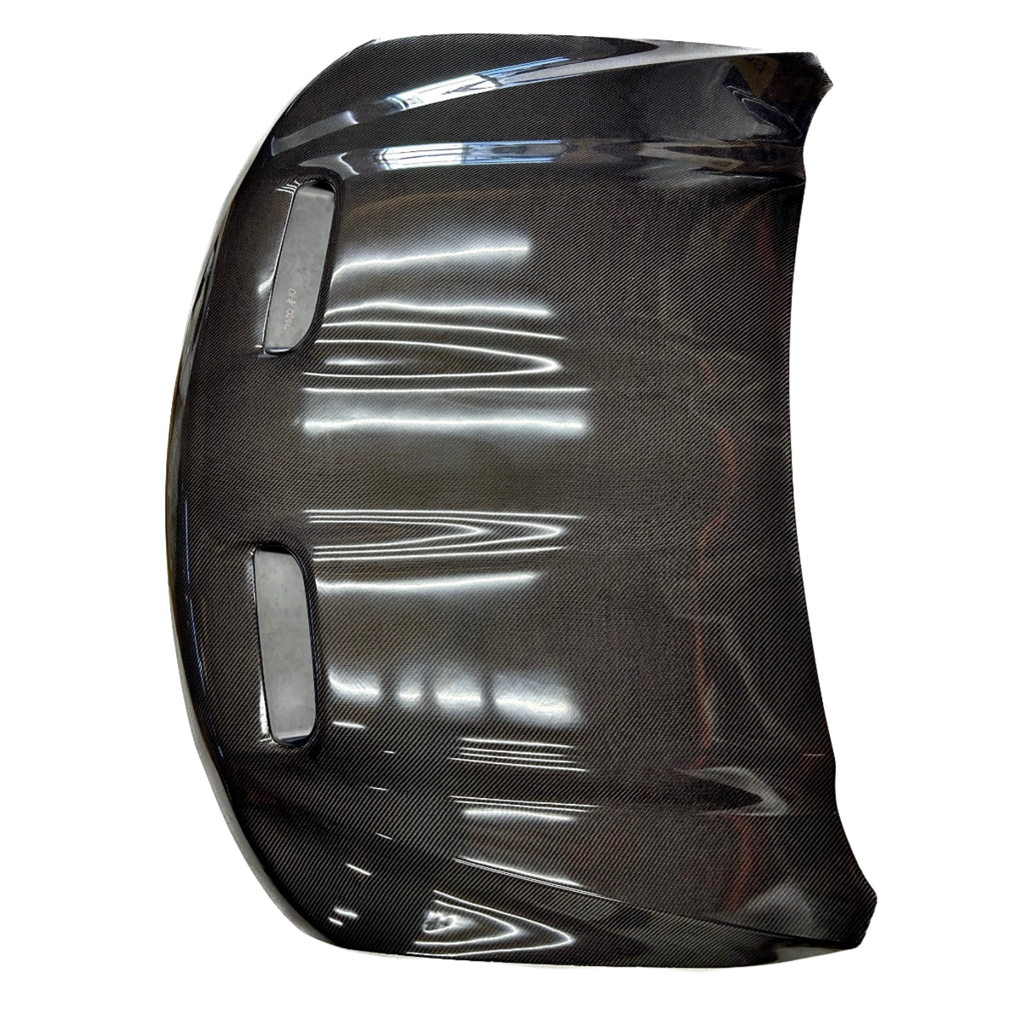 Lightweight Construction: Full carbon fiber or hybrid carbon fiber/fiberglass options reduce weight significantly compared to OEM aluminum hoods (17 lbs vs. 32-39 lbs for older models). Optional race-style pin-on hoods offer up to 8-10 lbs of additional weight savings.