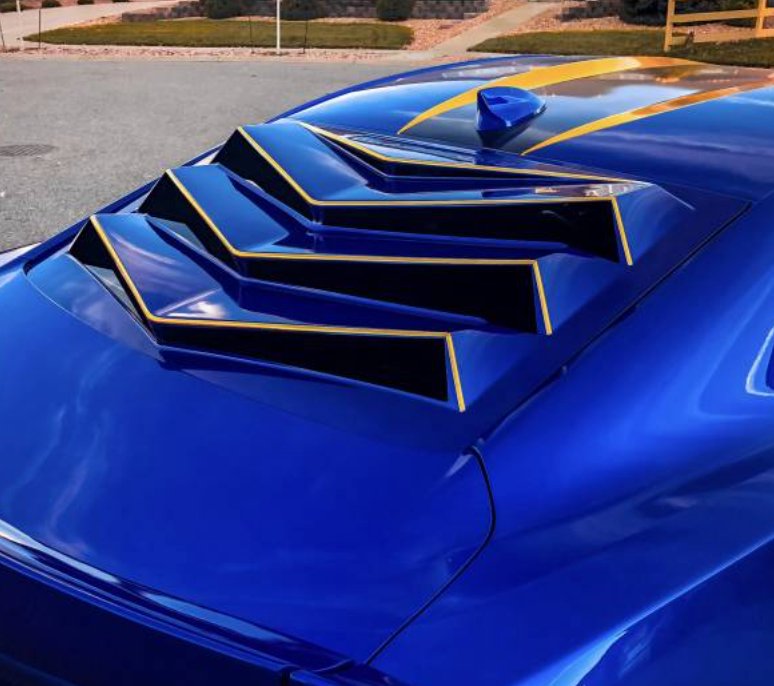 Introducing the GLASSSKINZ(R) BAKKDRAFT CAMARO 6 SERIES! GLASSSKINZ(R) Is not a louver. It is a evolutionary "Rear Window Valence" . Derived from digitally scanned CAD data for precise fit and maximum rearward vision. GLASSSKINZ® has a very sleek lean profile from the side with an aggressive visual from behind. All of our unique designs offer clear rearward vision with no obstruction unlike a standard decades old louver designs which have substantial visibility limitations.(Click documents for full NHTSA report)Made of a durable high quality sun resistant, temperature stable ABS containing 30% recycled materials. The ABS GLASSSKINZ(R) parts will come out of the box with a ready to paint surface, pre painted by us in OEM colors, or a variety of other custom finishes like matte black .3m panel bond is pre installed and tabbed for easy fast installation. (adhesion promoter provided Install video BELOW ) Personalize your GLASSSKINZ(R) with a wrap, custom paint, stripes, camo ...the sky is the limit! So unique, the U.S. patent office awarded us our PROTECTED UNDER US PATENT D843,902S Status!