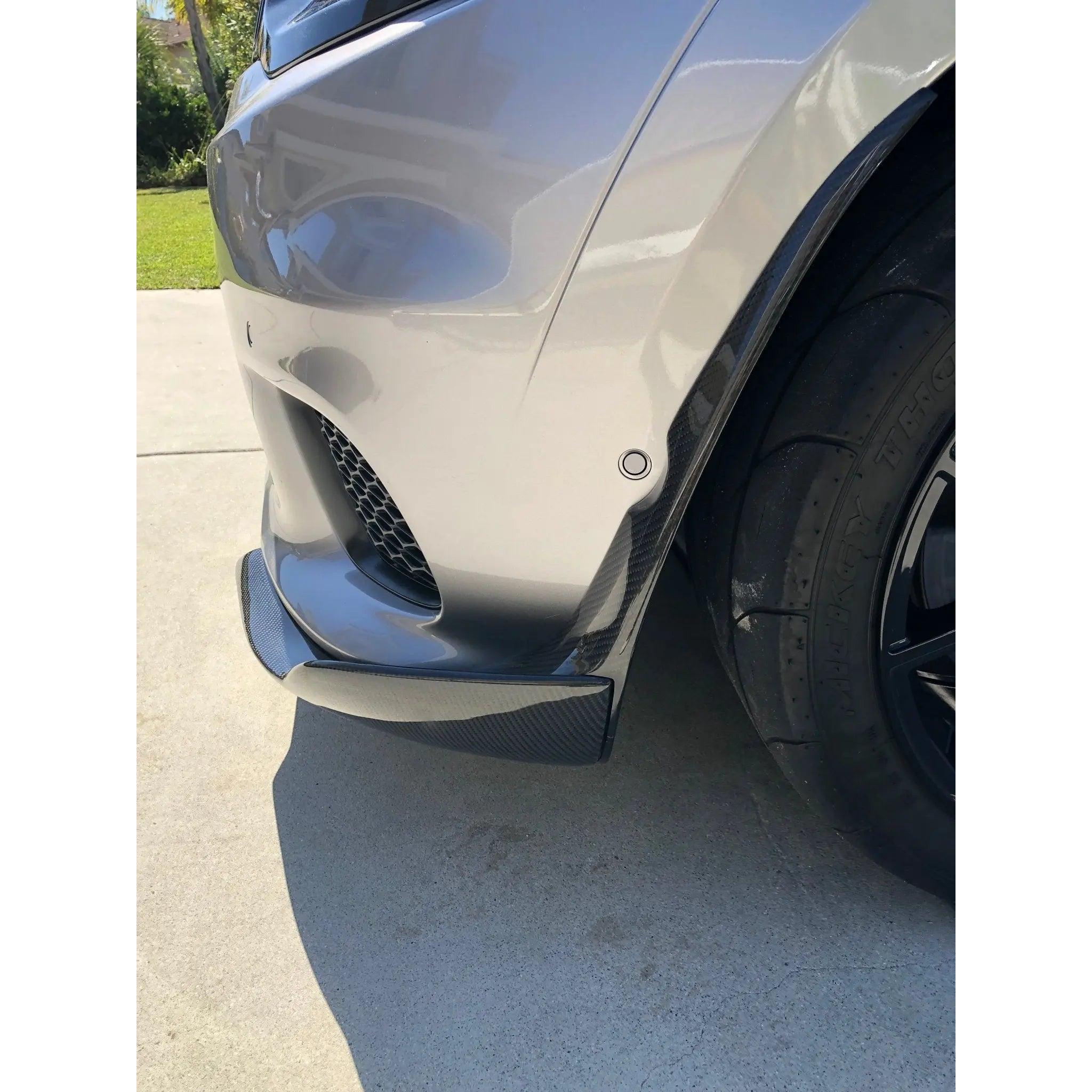 TrackDemon Carbon Fiber Front Lip (3-Piece Design): Includes the main front lip and two side splitters for a complete, cohesive look.