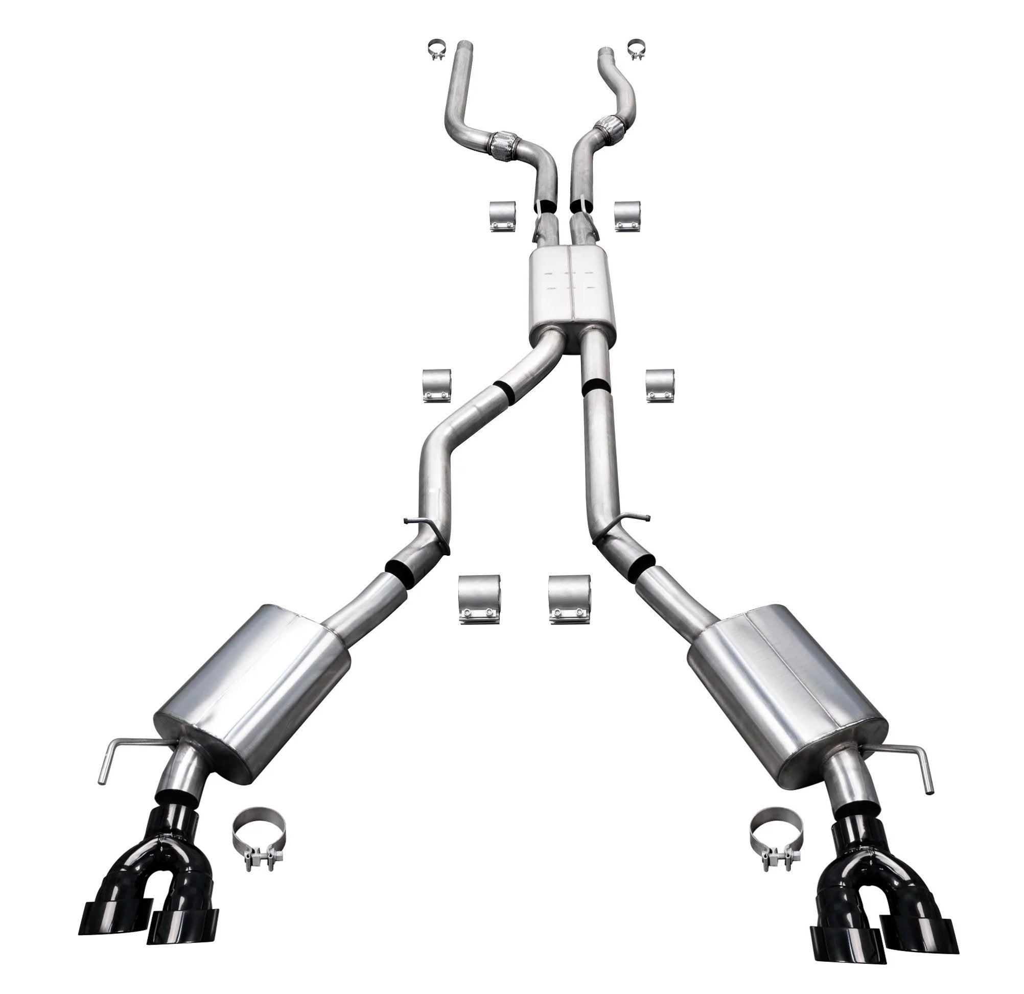 From the front pipes all the way back, the 3" tubing creates a more aggressive, higher flowing exhaust. A deeper, throatier sound, and the same True Helmholtz Technology to eliminate drone. The front pipes connect after the catalytic converters and do not alter the OE emissions.
