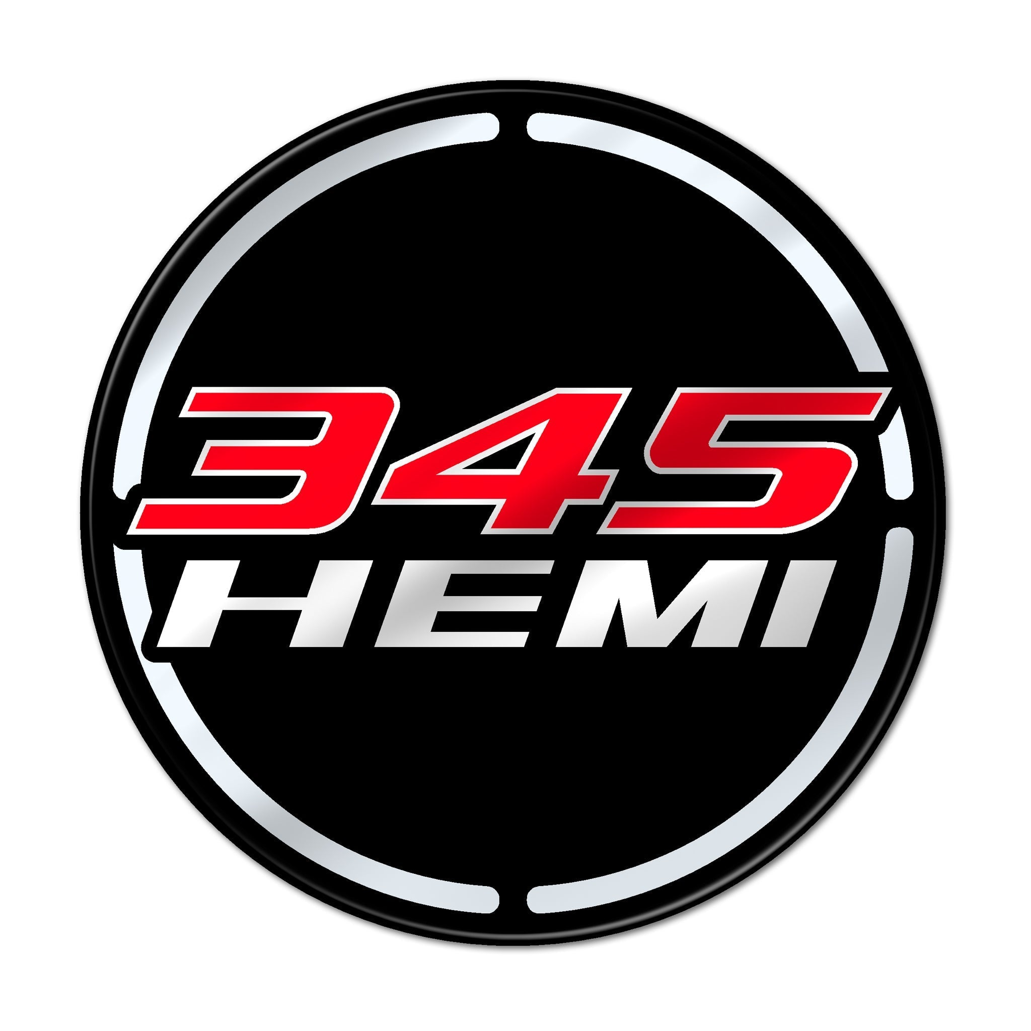 This set comes on a gloss black background, silver "Hemi" lettering and your choice of 12 available colors to customize the "345" text (image shown in 'Red').