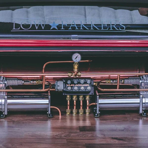 A valve manifold for air suspension is the heart of any air suspension system. The valve manifold electronically controls the air delivery in your system. It is usually made up of an aluminum block with electronic solenoids, valves, and ¼” fittings to allow for an easy installation. The biggest thing to look for here is whether you need a 2 or 4 corner unit, the quality of the manifold as it may be exposed to the elements, and the way that it connects to your system.