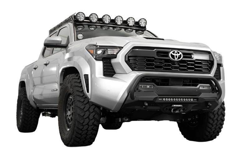Our Stealth Winch Front Bumper features a top hoop and full recovery options. The bumper includes two D-ring mounts and a standard sized winch mount. Attach a 20-inch single row light bar to our universal center light mount. Adaptive cruise control, sensors, fog lights, and the front camera are all compatible with the bumper. Finished with a hammer and satin black powder coat. Made in America. *Please Note: Installation is bolt-on with minimal non-visual cutting required.*Please Note: The bumper is not compatible with factory skid plates or the TRD Pro trim.