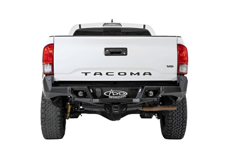 Addictive Desert Designs Toyota Tacoma Stealth Fighter rear bumper is one of the slimmest bumpers on the market. The Stealth Fighter adds protection with a unique style without adding bulk or size to the Tacoma. Two rear facing cube light mounts come standard with the Stealth Fighter and integrated reinforced clevis mounts accept a 3/4" D-Ring for added utility.