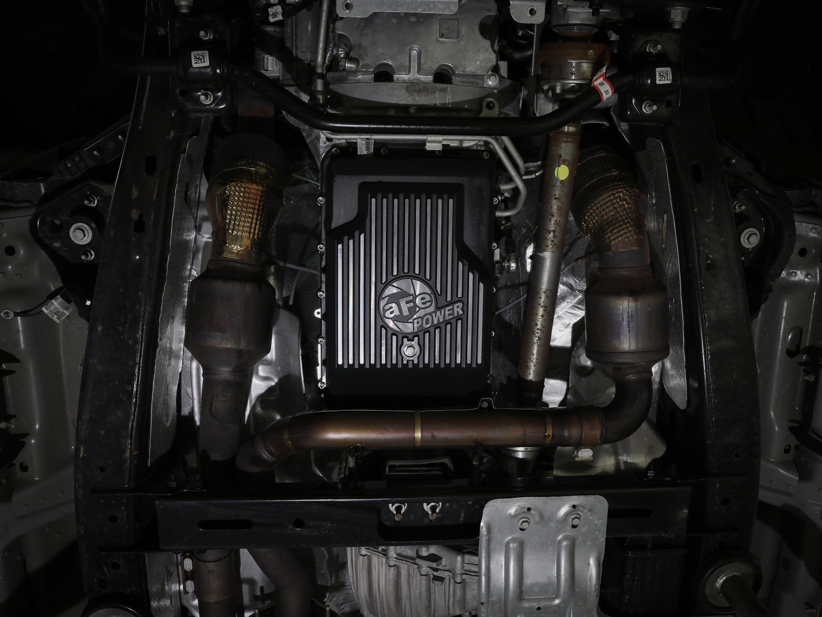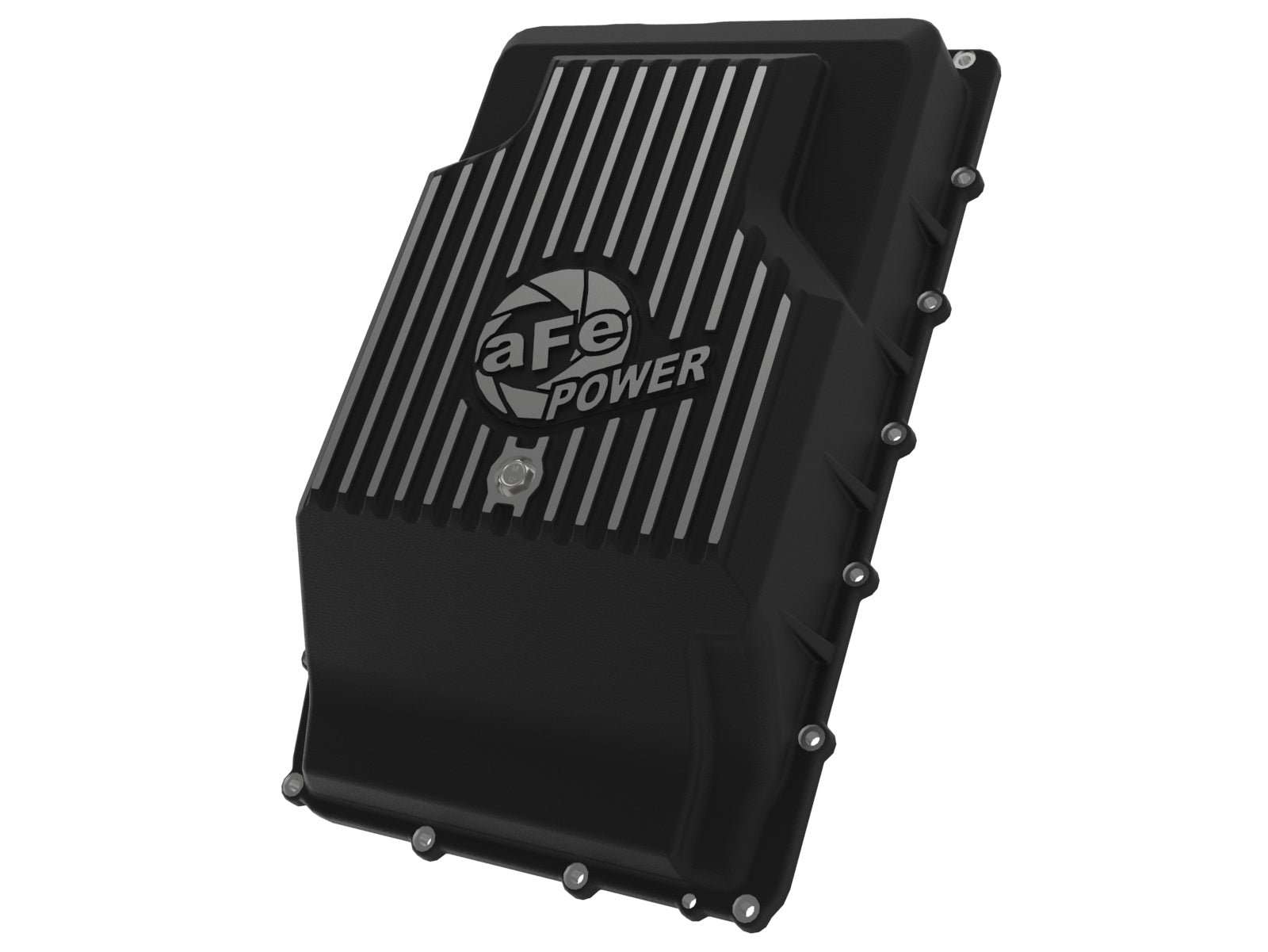 aFe POWER Pro Series Transmission Pan Black w/ Machined Fins aFe POWER Pro Series Transmission Pan Black w/ Machined Fins Ford Trucks/SUVs 17-23 (10R60/10R80) aFe POWER's Pro Series transmission pan brings performance engineering to the protection of your truck's transmission. The Pro Series transmission pan is constructed out of durable die-cast aluminum with reinforced ribs inside and out for maximum strength and heat transfer. This cover fits the Ford 10R60 and 10R80 transmissions. This Transmission pan has an increased fluid capacity of approximately 2.3 quarts over stock for better performance over a longer duration. Built-in internal and external fins transfer heat from the oil to the outside air for maximum cooling. Transmission pan comes with necessary hardware for installation. This pan incorporates a magnetic drain plug to capture loose particles for maximum protection. Constructed out of durable, die-cast aluminum Black Powder Coat with Machined Fins Neodymium magnetic drain plug is used for maximum gear protection Extra Capacity Provides Better Cooling While Towing Fits Ford Trucks and SUVs with 10R60 or 10R80 Transmissions