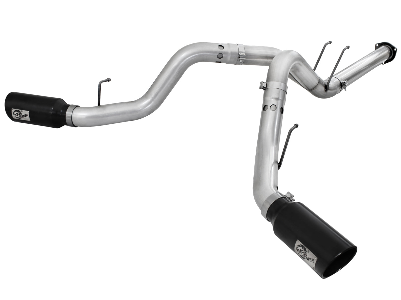 ATLAS 4 IN Aluminized Steel DPF-Back Exhaust System w/Black Tip ATLAS 4 IN Aluminized Steel DPF-Back Exhaust System w/Black Tip Ford Diesel Trucks 11-14 V8-6.7L (td) Interested in a new exhaust system? Check out the ATLAS DPF-Back exhaust system by aFe. This system is constructed from 5 in. mandrel-bent aluminized steel tubing. Smooth transition bends allow for low turbulence, increasing horsepower, torque and lowering EGTs. Uses high quality band clamps and OE-style bayonet hangers. This unit uses all factory mounting locations to provide a quick, hassle-free installation. ATLAS exhaust systems are the perfect combination of performance, fit and value. All aFe exhaust systems are engineered and manufactured in out Corona, California manufacturing facility. 4 in. Aluminized Steel Tubing Dual 6 in. Polished Tips w/Laser Cut aFe Badges Increased Flow And Performance High Quality Band Clamps Bayonet OE-Style/Welded-On Hangers Aggressive Sound Street Legal Exhaust Does Not Effect Spare Tire Hassle Free Installation Direct Bolt On 50 State Legal 2 Year Limited Warranty