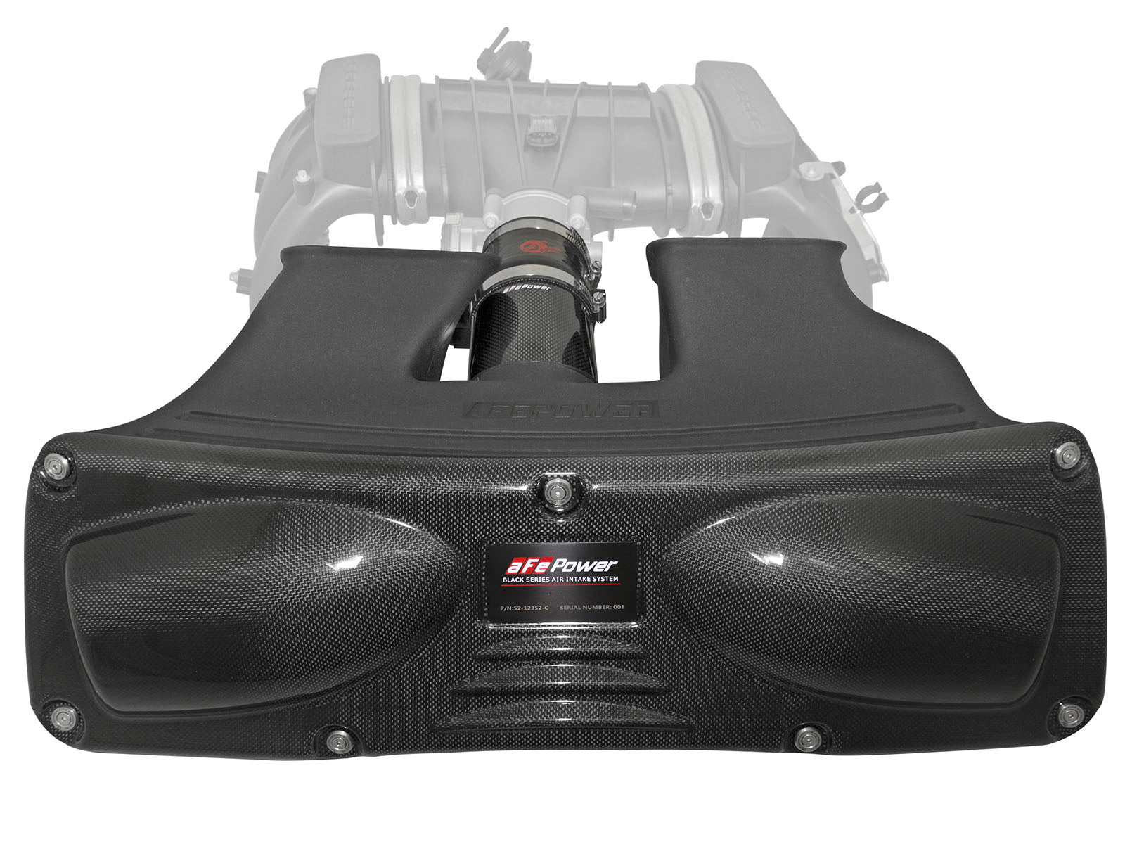Black Series Stage-2 Carbon Fiber Cold Air Intake System w/ Pro 5R Filter Black Series Stage-2 Carbon Fiber Cold Air Intake System w/ Pro 5R Filter Porsche 911 (991) 12-16 H6-3.4L/3.8L Unique computer Designed Housing: A custom CAD plastic housing encloses the dual performance air filters. This roto-molded housing is made out of black cross-linked polyethylene and mounts directly into the factory mounting location. It also connects to the factory air inlets to capture the coolest air available. Carbon Fiber Intake Tube: Lightweight high gloss clear-coated plain weave carbon fiber tube directs the filtered air from the dual air filters to the engine. It is computer designed and tested to increase air flow while reducing weight and enhancing the visual appearance of the engine bay. Carbon Fiber Cover: This unique carbon fiber cover is also lightweight high gloss clear-coated plain weave carbon fiber and closes off the housing from unwanted hot engine air. It features a serialized Black Series emblem for authenticity and is secured to the housing using aFe POWER laser etched washers and bolts. This cover will enhance your engine bay appearance. 8% Weight Reduction: This air intake system offers a 8% reduction versus the factory air intake system, thanks to the extensive use of carbon fiber material. 2 Sets Of Performance Air Filters: This Black Series intake system offers the option to use a pre-oiled or oil-free 360 degree radial flow performance air filters. Each kit comes with two pairs of large 7" tall inverted top conical air filters (Total of 4): One set constructed in our 5-layer progressive oiled media (Pro 5R) for maximum airflow and performance, and the other made out of our 3-layer synthetic oil-free media (Pro DRY S) for maximum convenience. Premium Hardware: Premium stainless steel clamps, a reinforced silicone coupler and polyurethane sleeve housing inserts are used for strength and durability while also providing the most secure installation available. In 2020, Porsche created a recall to add a heat shield in the engine compartment under the air box. The heat shield is to prevent foreign objects left in the engine compartment to make contact with hot exhaust system components and ignite. aFe POWER housing will currently not fit with the heat shield added after the recall. aFe POWER is working on making an update to the housing to allow fitment with this heat shield +15 HP / +15 ft./lbs. Torque Max Gains Outflows Factory Intake By 15% 8% Weight Reduction vs. Factory Air Intake Lightweight High Gloss Plain Weave Carbon Fiber Tube/Cover Custom Laser Etched Stainless Steel Washer And Bolts CAD RotoMolded Housing That Enclose The Dual Air Filter Set Up Serialized Black Series Plate For Authenticity No Cutting Or Drilling On Factory Parts For Quick/Easy Install