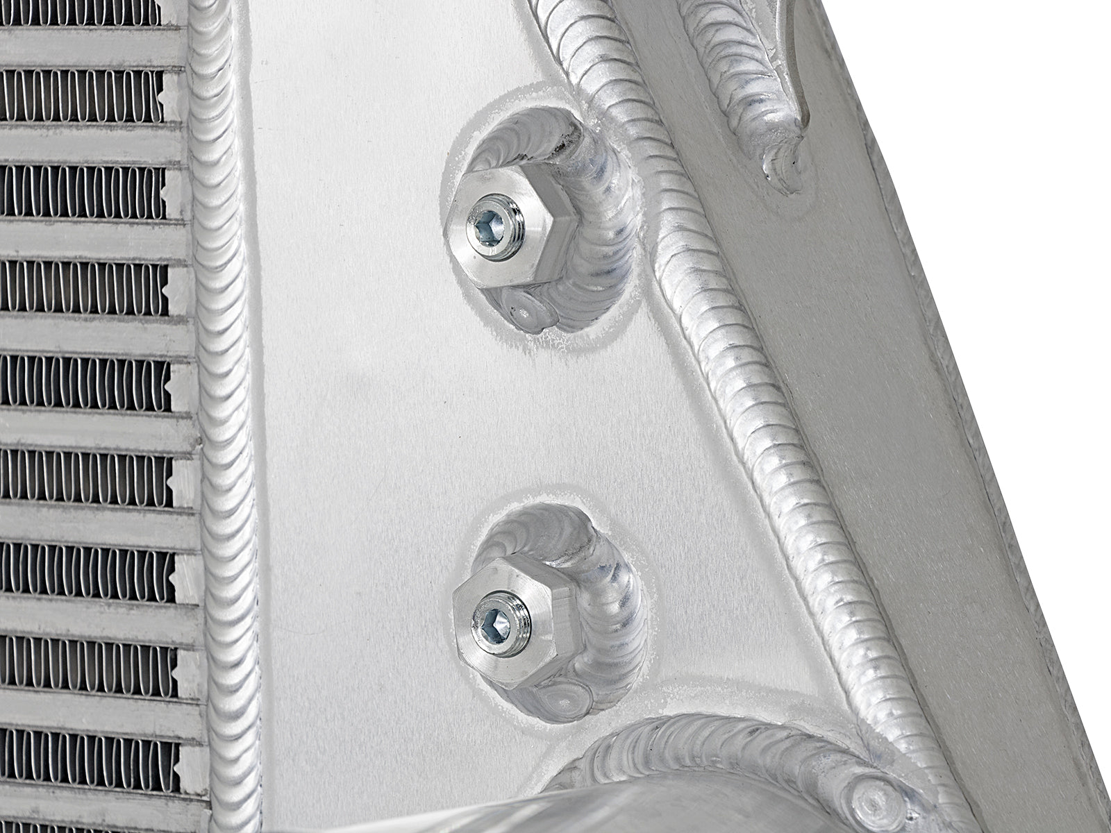 BladeRunner GT Series Intercooler Kit w/ Tubes Black BladeRunner GT Series Intercooler Kit w/ Tubes Black Ford Diesel Trucks 03-07 V8-6.0L (td) This BladeRunner Intercooler represents the next generation of intercoolers. The BladeRunner intercoolers utilize a 3.15" thick bar and plate design that is 44% larger than stock and outflows OE style tube and fin core designs by 40%! Silicone Couplers with beads are used for a leak-free seal. No blowouts with this coupler. End Tanks: The unique BladeRunner end tanks are constructed out of 3/16" TIG welded aluminum plate tanks that incorporate three multi-directional vanes. Multi-Directional Vane Technology: The BladeRunner MDV technology is used to direct hot air flow through the entire intercooler core. This allows for greater cooling than competitors units. 3.15" Thick Bar and Plate Core: The use of the bar and plate core design allows for greater airflow and increased heat dissipation over the much smaller tube and fin design used by the OEM. Multiple Auxiliary Ports: Four tapped 1/8" ports are supplied on the tanks for easy installation of gauges or nitrous oxide systems. Billet Aluminum Inlet/Outlets: Each BladeRunner Intercooler uses billet aluminum inlets and outlets for superior strength and durability. The 3-1/2" inlet/outlet with reducer couplings to match stock tubes. Tig-Welded: 100% TIG-Welded by certified craftsmen for race proven strength and durability. TIG-Welding provides the strongest welds reducing stress cracks. Flow and Performance: The intercooler tube is constructed of 3" mandrel bent powder-coated stainless steel tubing for maximum flow. Smooth transition bends allow for low turbulence, increasing horsepower, torque and lowering EGT's. Comes complete with 4-ply heavy duty couplings and constant tension T-bolt clamps for a tight and secure installation. The BladeRunner Intercooler is test pressure rated at 200psi which is perfect for high boost applications. Don't waste your time and money on modified factory intercoolers. Invest in the aFe BladeRunner intercooler, the most sophisticated intercooler design on the planet. 100% TIG-Welded For Strength And Durability Intercooler Is Test Pressure Rated At 200 PSI Stainless Steel Tubes Powdercoat Black Tubes For Heat Resistance Coupler Hose Allows For Expansion/Movement/Vibration High Quality Reinforced 5-Ply Silicone Couplings Stainless Steel Spring Loaded T-Bolt Clamps Factory Mounting Locations Includes Hardware For A Hassle Free Installation