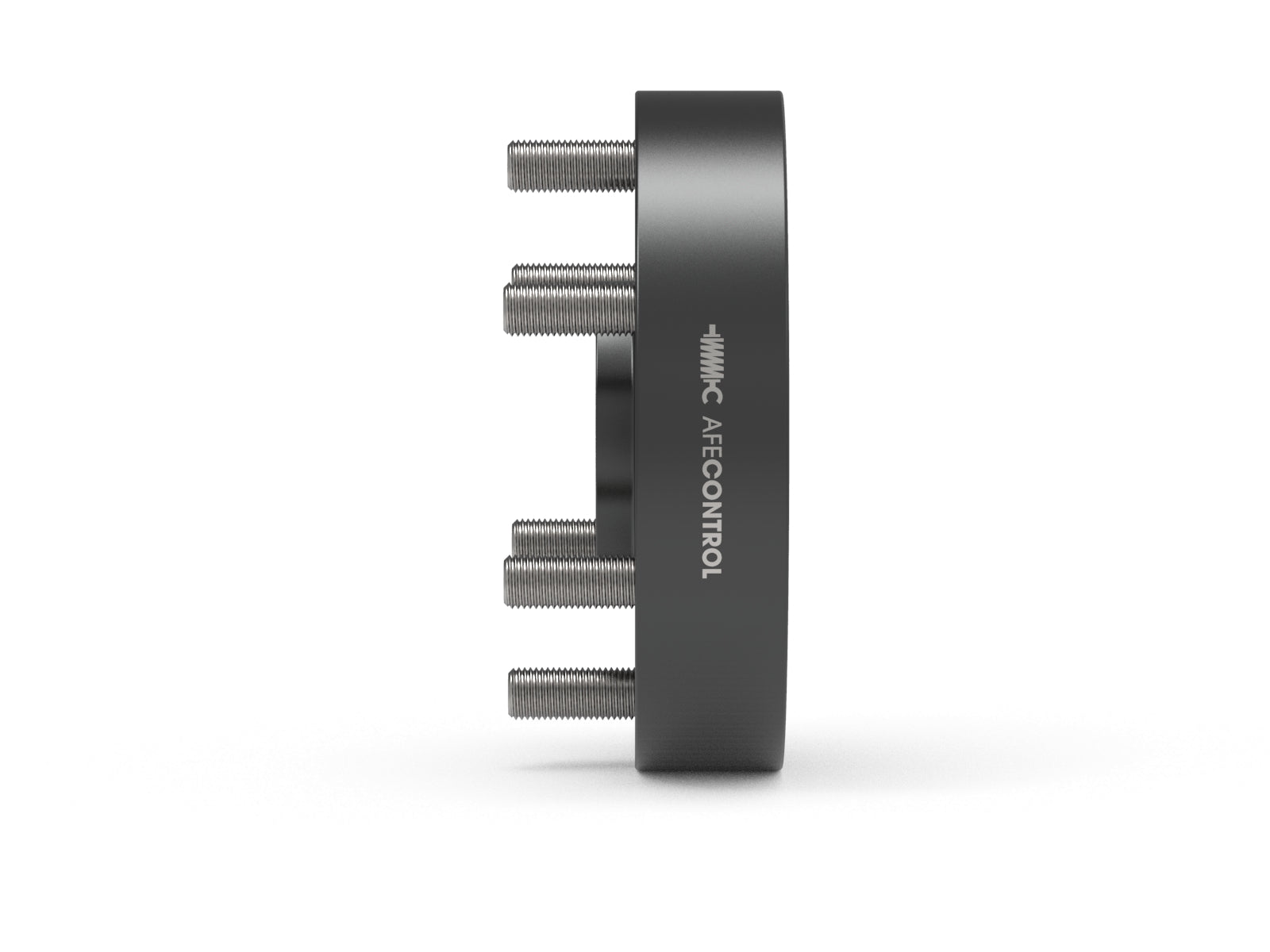 aFe CONTROL Forged Aluminum Wheel Spacers aFe CONTROL Forged Aluminum Wheel Spacers RAM 1500 (DT) 19-25 6x5.5mm, CB 77.8mm, 1-1/2 IN Thickness aFe CONTROL forged wheel spacers are a great way to improve the aesthetics, functionality, and wheel fitment of your vehicle. By effectively lowering the offset of your factory or aftermarket wheels, our spacers allow you to dial in a more aggressive fitment and provide clearance for other components such as brakes and suspension. The resulting increase in track width also improves handling and stability. All our spacers are designed in-house and machined to strict tolerances to ensure a perfect fit and long-lasting durability. Our hub-centric spacer design ensures the wheels are centered with the hub, allowing for wheel loads to be transferred to the hub for a stronger platform and eliminating any chance of vibration. Using 6061 aluminum heat treated forged blanks, our spacers are CNC machined to strict tolerances resulting in superior strength and precision. Studs and Lug Nuts Included Black Anodized Finish Laser Etched Logo and Sizing Sold as a Pair