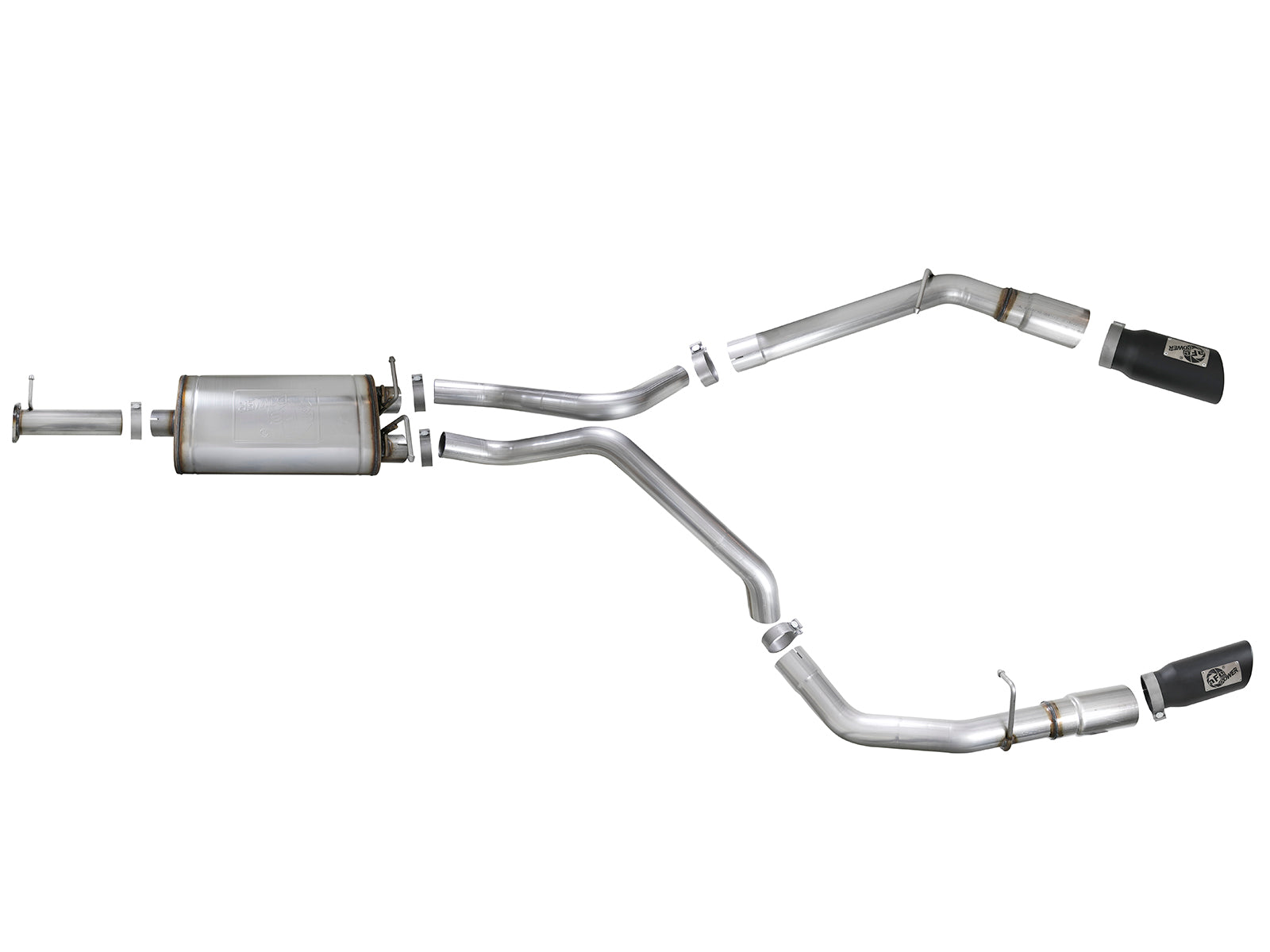 MACH Force-Xp 3 IN Stainless Steel Cat-Back Exhaust System w/ Dual Black Tips MACH Force-Xp 3 IN Stainless Steel Cat-Back Exhaust System w/ Dual Black Tips RAM 1500 (DT) 19-24 V8-5.7L HEMI Now your 2019 Dodge Ram 5.7 HEMI can perform and sound as good as it looks with this MACH Force Xp cat-back exhaust system. In-house dyno testing produced gains of up to +22 horsepower and +26 lbs. x ft. torque for towing, track and street performance. 3" mandrel bent, 409 stainless steel tubing and high-flow, muffler improve performance across the power band and delivers a deep, aggressive exhaust tone. 100% MIG-welded for strength and durability and long lasting, good looks, this system is finished with dual, 5" polished stainless steel tips with aFe Power logo badging for a unique, custom appearance. Stainless Steel Tubing For Improved Performance 100% MIG-Welded For Strength and Durability Muffler Reduces Backpressure Muffler Provides a Deep Tuned Sound Tips w/aFe Power Logo For A Custom Appearance Quality Hardware and Clamps For Hassle Free Install