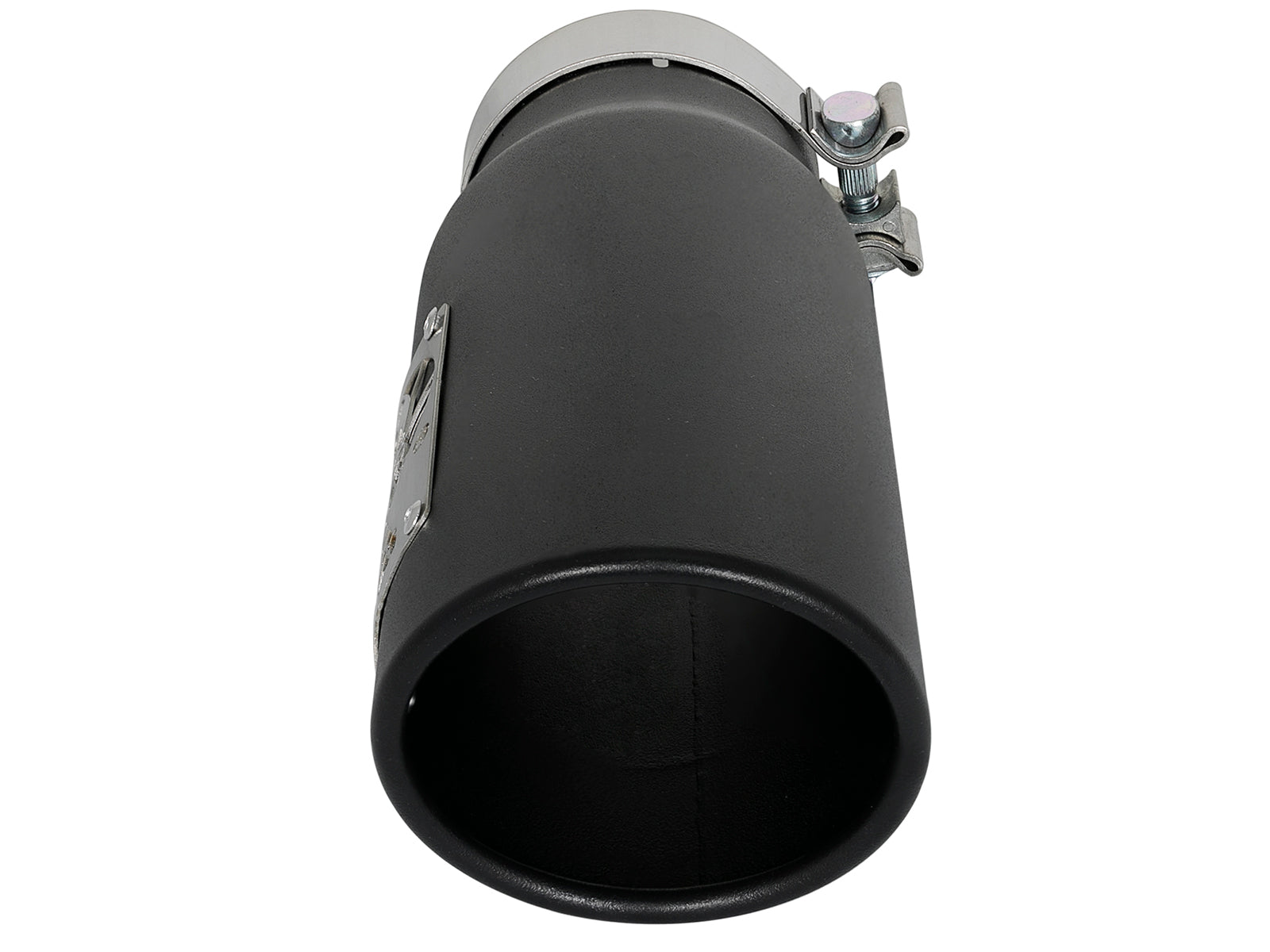 MACH Force-Xp 409 Stainless Steel Clamp-on Exhaust Tip Black MACH Force-Xp 409 Stainless Steel Clamp-on Exhaust Tip Black 3-1/2 IN Inlet x 4-1/2 IN Outlet x 12 IN L aFe Power is proud to introduce the all new diesel exhaust tip. This tip comes with a black finish and is designed to fit 3-1/2" exhaust systems. With a 3-1/2" inlet x 4-1/2" outlet and 12" inch length, this single-walled, angle cut rolled tip comes with a unique laser-cut aFe Power logo plate riveted on for an aggressive style. Leak-Free Seal: A high quality stainless steel band clamp is used for a complete 360 degree sealing surface. aFe Badging: The exhaust tip comes with a unique laser-cut aFe Power logo plate riveted on for an aggressive style. For A Quality Custom Finish 409 Stainless Steel For Durability Laser-Cut aFe Power Logo Plate Riveted For An Aggressive Style High Quality Band Clamp To Securely Attach The Tip