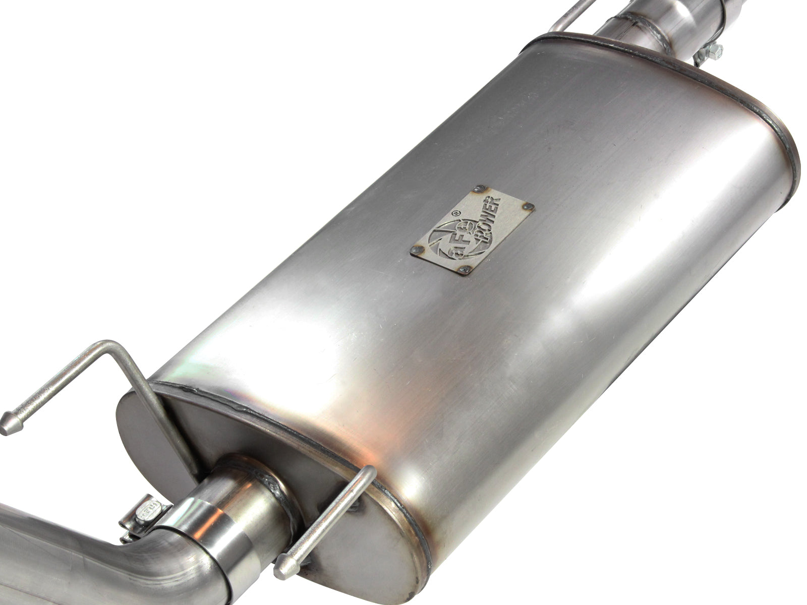 MACH Force-Xp 3 IN 409 Stainless Steel Cat-Back Exhaust System MACH Force-Xp 3 IN 409 Stainless Steel Cat-Back Exhaust System Toyota Tacoma 05-12 V6-4.0L Introducing the new aFe Power MACH Force XP dual exhaust system for the 05-09 Ford Mustang V6-4.0L. In recent testing, this system produced 12 horsepower and 16 lbs. x ft. of torque. This exhaust is constructed from 2.5in. mandrel bent, stainless steel and is MIG-welded. Dual high flow, stainless steel, single in, single out mufflers are used to maximize performance across the power band while maintaining a great tone. To finish off this exhaust aFe uses dual, laser etched, 3.5in. polished 304 stainless steel tips. Note: The V8 rear bumper cover is recommended (Ford OE Part Number 5R3Z17K835BAA). The use of the OE V6 bumper cover requires cutting and should be performed by a skilled technician. 3 in. Mandrel Bent 409 Stainless Steel Tubing Hassle Free Installation Free Flow Muffler Aggressive Sound OE Hanger Locations Mandrel Bent Black Tip 26 HP Gain/30 ft./lbs. Torque Gain 50 State Legal 2 Year Limited Warranty