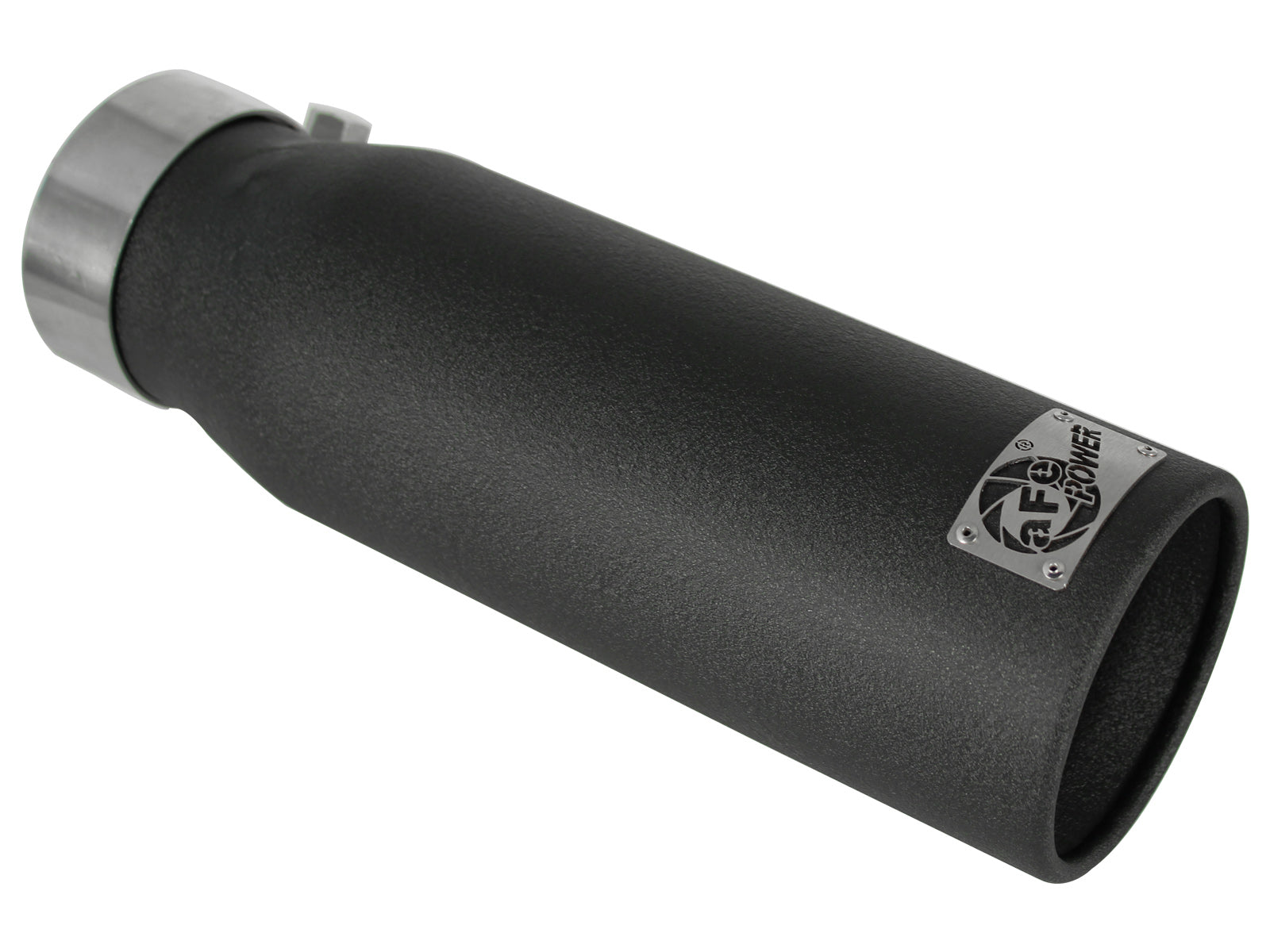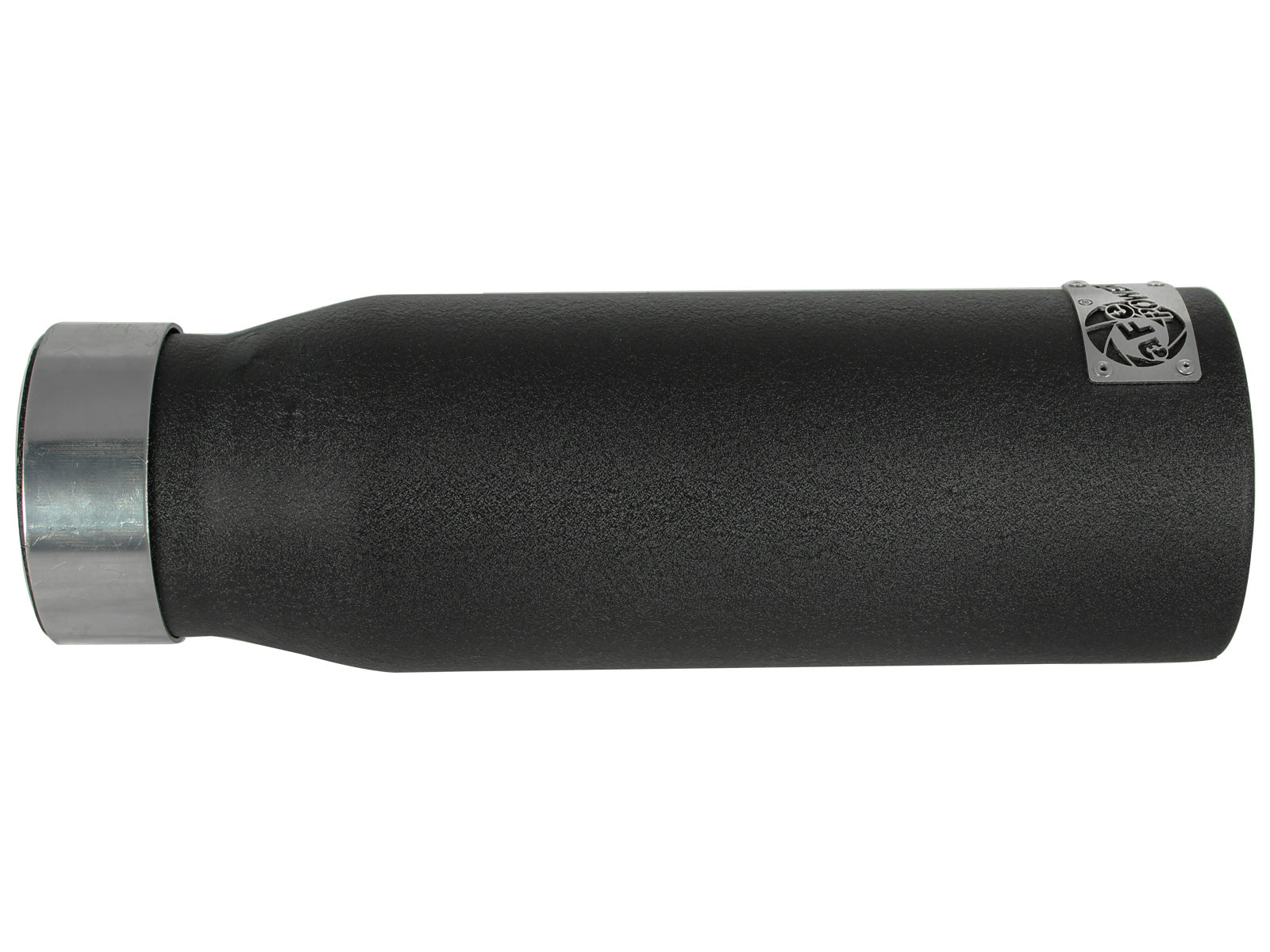 MACH Force-Xp 409 Stainless Steel Clamp-on Exhaust Tip Black MACH Force-Xp 409 Stainless Steel Clamp-on Exhaust Tip Black 3 IN Inlet x 4 IN Outlet x 12 IN L Nothing looks cooler than a huge tip completing your exhaust system. The aFe Power tip is constructed out of high luster, polished 304 stainless steel and has a slash cut and an aFe Power logo lazer etched into the top of the tip. A drain port on the bottom keeps rust and corrosion away. 304 Stainless Steel Wrinkle Black Finish 304 Stainless Steel Clamp AFe Power Plate Universal Design 2 Year Limited Warranty