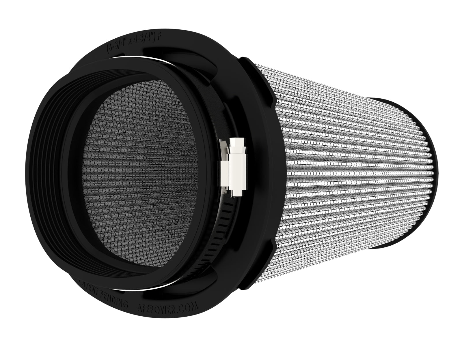 Momentum Intake Replacement Air Filter w/ Pro DRY S Media Momentum Intake Replacement Air Filter w/ Pro DRY S Media (6-3/4x4-3/4) IN F x (8-1/4x6-1/4) IN B x (7-1/4x5) IN T (Inverted) x 8-1/2 IN H With three layers of progressively finer mesh synthetic media between 100% polyurethane top and base, this high flow, "oil-free" conical performance filter provides maximum convenience and easy maintenance with excellent airflow. Washable and reusable for multiple cleanings, the tall open evenly spaced pleats provide excellent dust holding capacity for longer service cycle between cleanings. Pliable polyurethane flange with integrated bumps insures tight, no leak seal over the life of the filter. This filter has a 99.2% filter efficiency. Maximum Convenience and Easy Maintenance With Excellent Airflow 100% Polyurethane Frame On All Sides For Extra Long Filter Life Washable And Reusable For Multiple Cleaning Cycles Maximum Airflow for Maximum Performance Gains Pliable Polyurethane Flange w/Integrated Bump Filter Washes Clean With Soap and Water