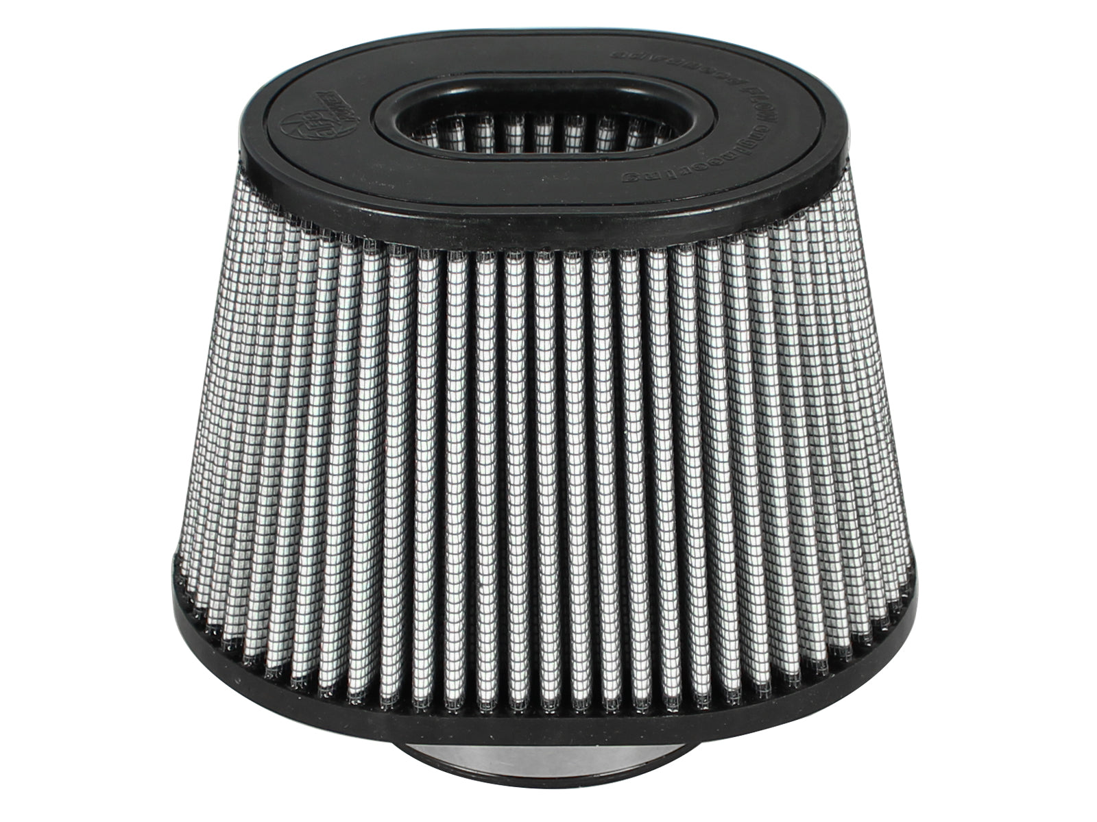 Magnum FORCE Intake Replacement Air Filter w/ Pro DRY S Media Magnum FORCE Intake Replacement Air Filter w/ Pro DRY S Media 4 IN F x (9x6-1/2) IN B x (6-3/4x5-1/2) IN T (Inverted) x 6-1/8 IN H With three layers of progressively finer mesh synthetic media between 100% polyurethane top and base, this high flow, "oil-free" conical performance filter provides maximum convenience and easy maintenance with excellent airflow. Washable and reusable for multiple cleanings, the tall open evenly spaced pleats provide excellent dust holding capacity for longer service cycle between cleanings. Pliable polyurethane flange with integrated bumps insures tight, no leak seal over the life of the filter. This filter has a 99.2% filter efficiency. Maximum Convenience and Easy Maintenance With Excellent Airflow 100% Polyurethane Frame On All Sides For Extra Long Filter Life Washable And Reusable For Multiple Cleaning Cycles Maximum Airflow for Maximum Performance Gains Pliable Polyurethane Flange w/Integrated Bump Filter Washes Clean With Soap and Water