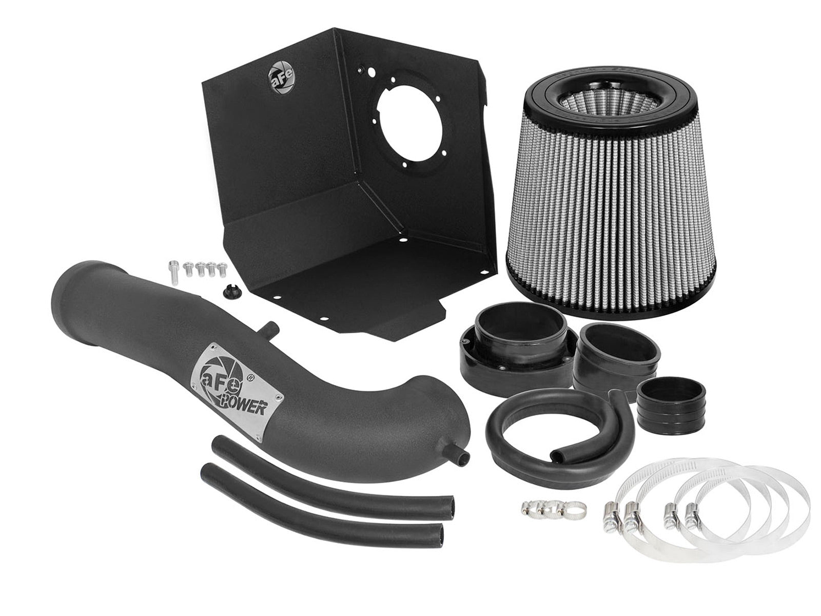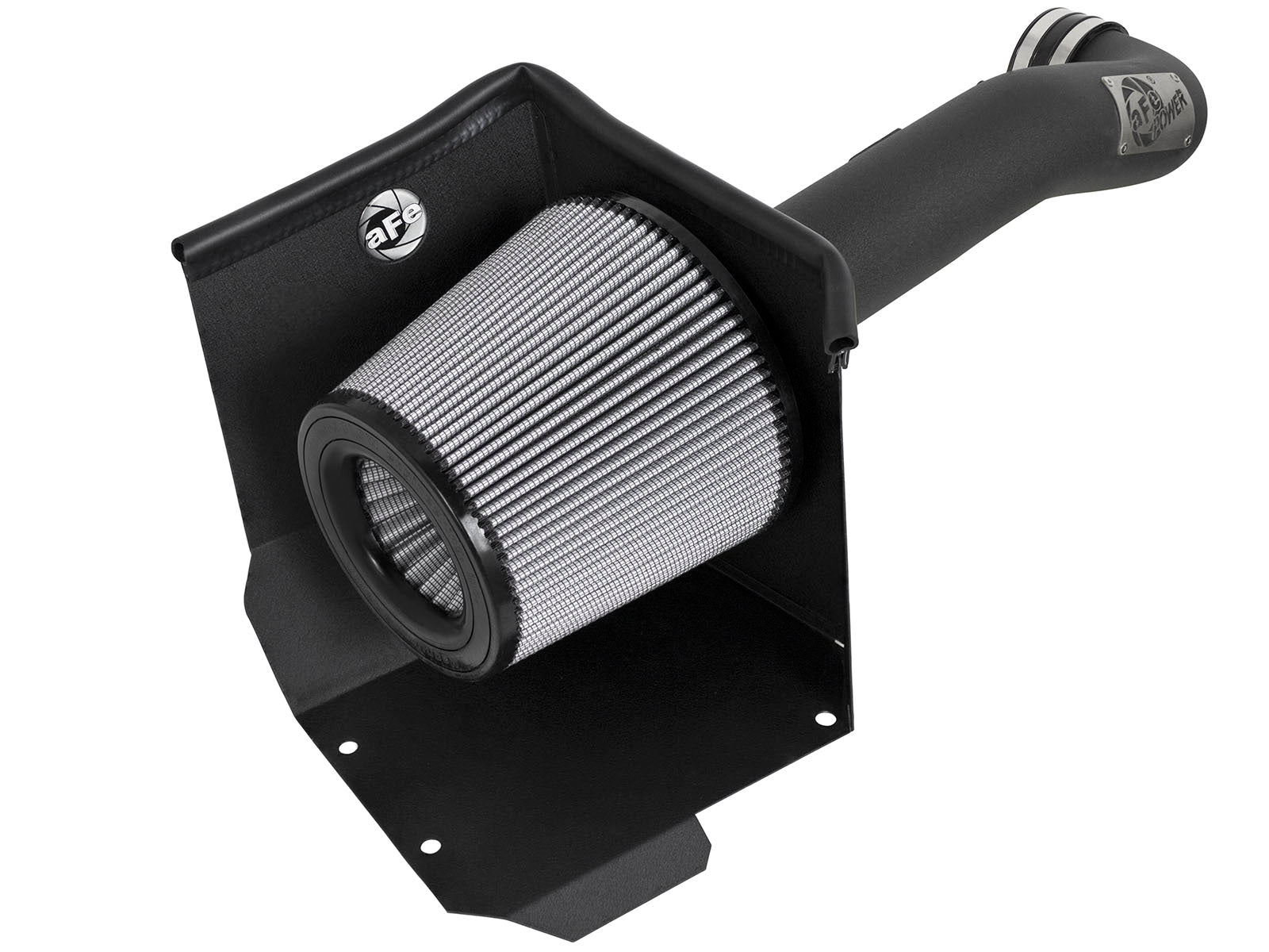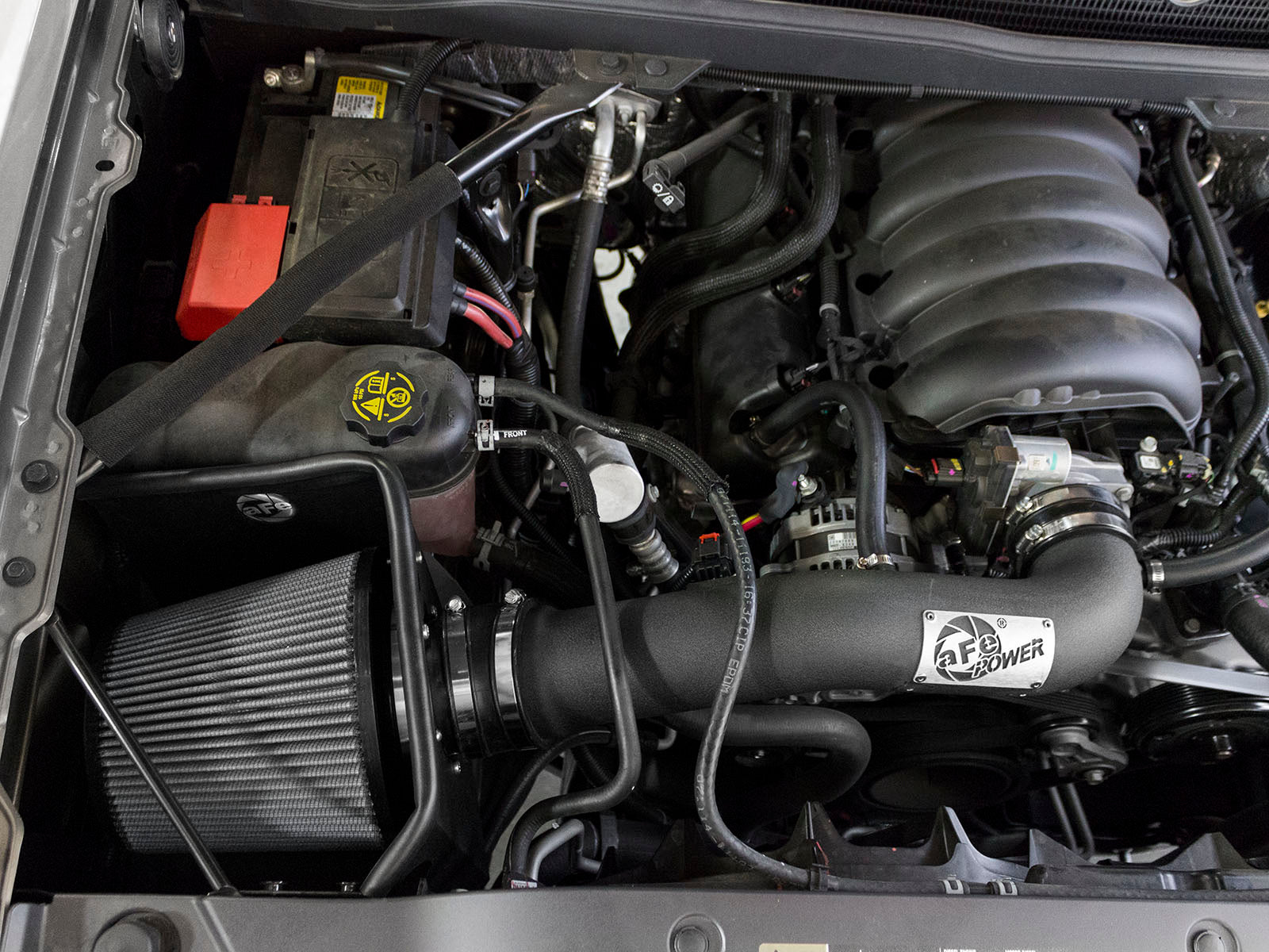 Magnum FORCE Stage-2 Cold Air Intake System w/ Pro DRY S Filter Magnum FORCE Stage-2 Cold Air Intake System w/ Pro DRY S Filter GM Silverado/Sierra 1500 14-19/Tahoe/Suburban/Yukon/XL/Escalade 15-20 V8-5.3L/6.2L Easy to install one piece 16-gauge powder-coated heat shield requires no cutting or drilling. Stylish powder-coated steel or brushed aluminum cover blocks heat and directs cold air to the filter while quieting intake noise. The precision designed molded plastic intake tube maximizes airflow volume and speed for optimum power gains. 360 degree flow, washable and reusable, limited lifetime filters are high flow and high performance. Uses Pro DRY S Air Filter For Maximum Convenience 3 Layer Of Progressive Non-Synthetic Oil Media Air Filter 100% Polyurethane For Long Life Washable And Reusable Air Filter 4 in. 360 deg. Air Filter Powdercoat 18 Gauge Filter Housing Heat-Insulating Rotomolded-Molded Plastic Tube No Cutting Or Drilling On OEM Parts Hassle Free Installation Stainless Steel T-Bolt Clamps