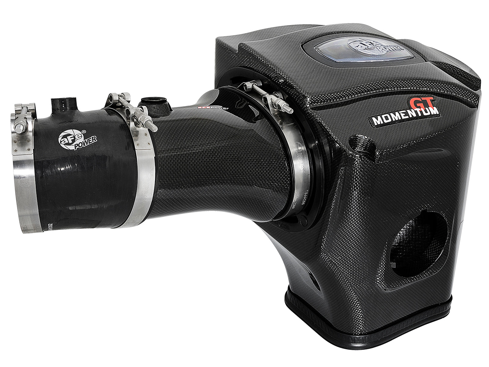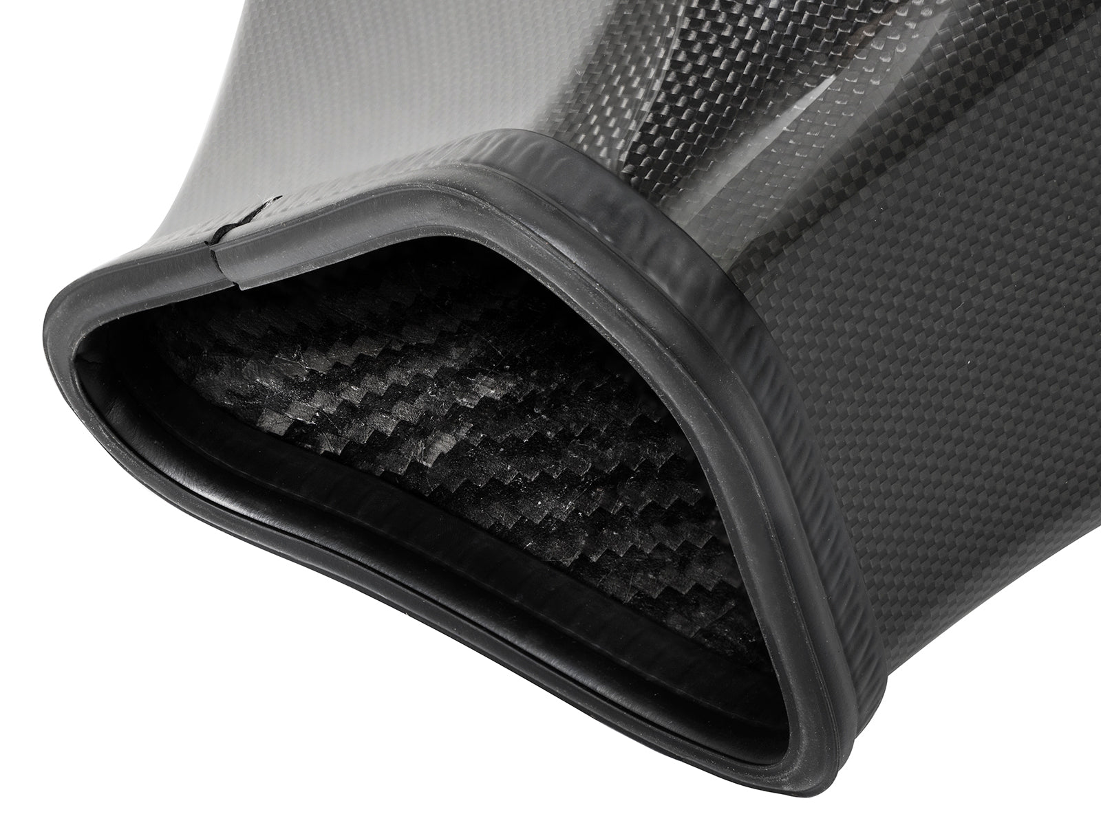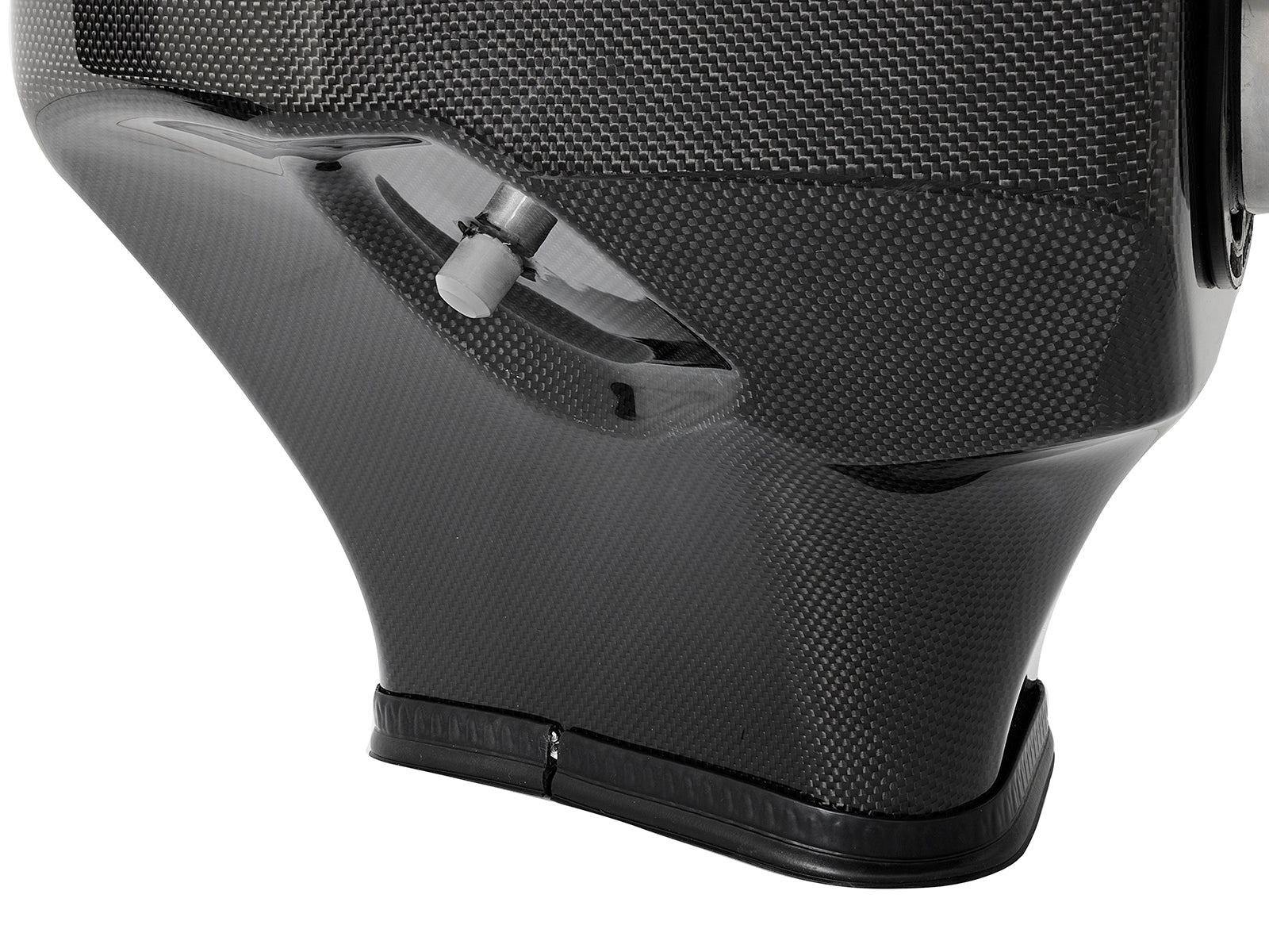 Black Series Carbon Fiber Cold Air Intake System w/ Pro 5R & Pro DRY S Filter Black Series Carbon Fiber Cold Air Intake System w/ Pro 5R & Pro DRY S Filter Dodge Challenger/Charger SRT Hellcat 17-18 V8-6.2L (sc) HEMI This Momentum intake system was designed around the largest filter possible to allow maximum performance and filtration. This cone filter has a massive (6.75" x 4.75") oval flange and is 8-1/2" tall. The system comes with both a Pro DRY S and Pro 5R performance air filter. The simple yet elegant design of the one-piece sealed housing makes installation a snap and features our (Patent Pending) filter-to-housing interface. A large clear sight window allows for filter inspection without removal of the airbox. The housing is made out of lightweight high gloss, clear-coated plain weave carbon fiber and mounts directly into the factory headlamp cold air inlet location on the driver side to capture the coolest air available from the factory intake tract. Momentum intakes are designed with fewer parts for a quick and simple installation. +27 HP / +24 ft./lbs. Torque Max Gains Outflows Factory Intake By 13% Unique Air Filter To Housing Interface Clear-Coated Carbon Fiber Housing And Tube Built In Sight Window Provides Easy Inspection Of Filter Incorporates Factory Headlamp Air Inlet Includes Both Pro DRY S Oil-Free And Pro 5R Oiled Filters Washable And Reusable No Cutting Or Drilling On Factory Parts For Faster Installation No Tuning Required