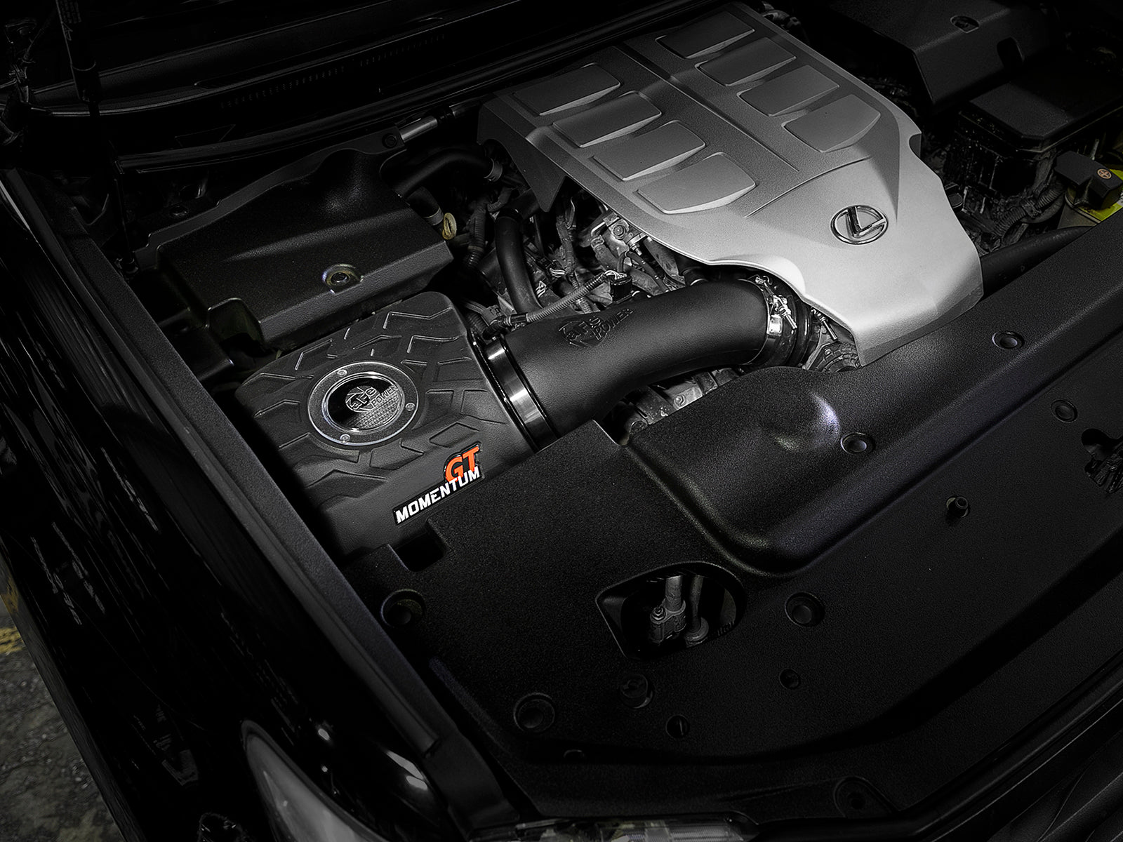 Momentum GT Cold Air Intake System w/ Pro DRY S Filter Momentum GT Cold Air Intake System w/ Pro DRY S Filter Lexus GX 460 10-23 V8-4.6L Large Three Layer Performance Air Filter:Momentum’s unique filter-to-housing interface was built to feature the largest air filter possible. With a massive 5" flange, this 9” tall 360-degree radial flow air filter features our oil-free Pro DRY S media with three layers of synthetic media for maximum convenience. Its progressive layering provides great filtration efficiency and dust holding capacity, while not requiring the use of oils. This media is best suited for street and light off-road use. Its inverted top makes for more filter surface area, resulting in longer service intervals.Unique One-Piece Housing:The smooth one-piece sealed housing, constructed of heat-resistant cross-linked polyethylene (XLPE), features our patented filter-to-housing interface. Its innovative design minimizes the total number of parts, making for an easy installation. A large, clear sight window allows for hassle-free filter inspection, without having to disassemble your system. Its optional auxiliary air inlet can be plugged with an included silicone plug if desired.Dyno-Tuned Intake Tube:This system features a high quality, computer-designed, dyno-tuned intake tube to achieve maximum power gains while maintaining a perfect fit. Its XLPE material is heat soak resistant and extremely durable.Premium Components:Momentum intakes are designed with fewer parts for a fast and easy installation. This is a direct fit intake system that utilizes factory mounting points and requires no cutting or modifications. All necessary T-bolt clamps, couplings, and hardware are included. With dyno-proven power gains, a massive reusable air filter, and a sealed heat-resistant design – this intake system delivers performance on and off-road. Durable XLPE Construction and Sealed Housing Protects From Impact, Extreme Temperatures, and Other Elements Washable and Reusable Pro DRY S for Maximum Convenience Innovative Filter-to-Housing Interface and Minimal Hardware for Fast and Easy Installation