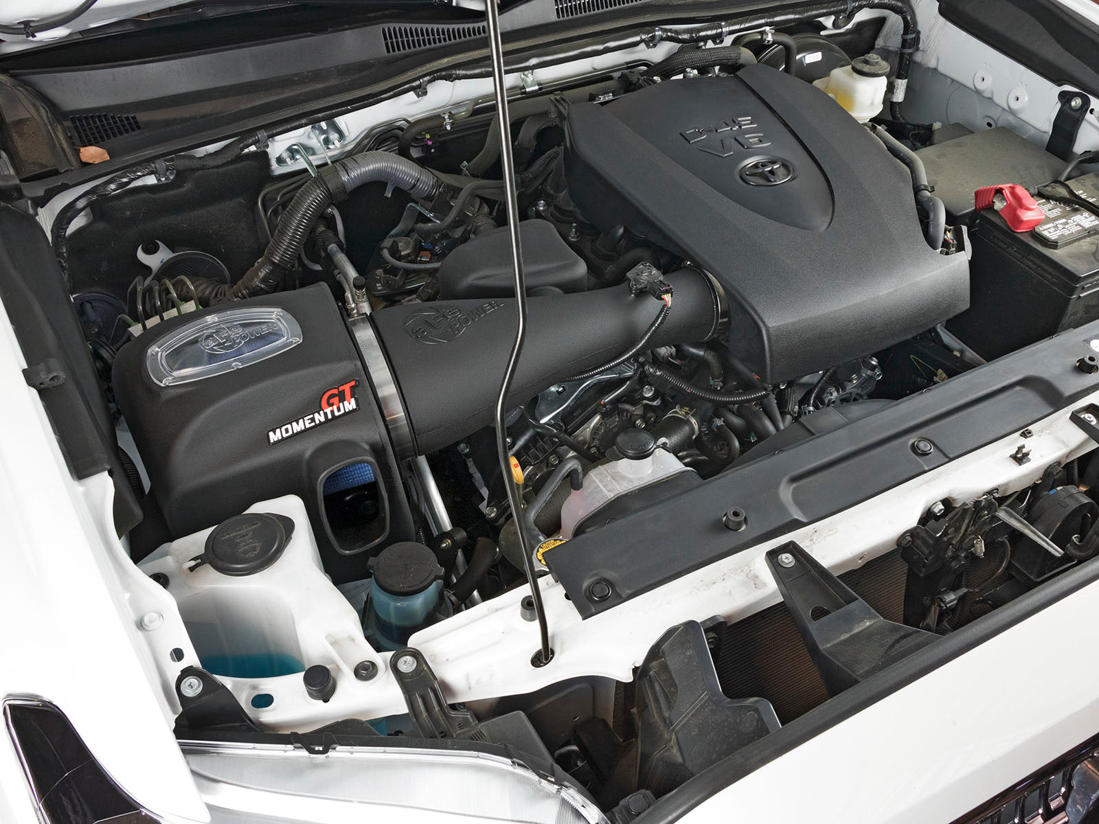Momentum GT Cold Air Intake System w/ Pro 5R Filter Momentum GT Cold Air Intake System w/ Pro 5R Filter Toyota Tacoma 16-23 V6-3.5L Bringing you the next generation of intakes, the Momentum GT sealed air intake system is designed using the most up-to-date engineering tools and techniques to provide you with the perfect blend of power and protection. This intake system is superior in every way. From the one-piece sealed housing with a tire tread top, to the massive air filter and premium hardware, we spared no expense to give you the best intake on the market. Outflows Factory Intake By Up To 39% High Quality 1-Pc. Roto-Molded Sealed Housing CAD Designed Roto-Molded Intake Tube Built In Sight Window Provides Easy Inspection Of Filter Unique Filter-To-Housing Interface For Easy Installation Pro 5R Oiled 5 Layer Progressively Finer Mesh Cotton Gauze Filter No Cutting Or Drilling Faster Installation