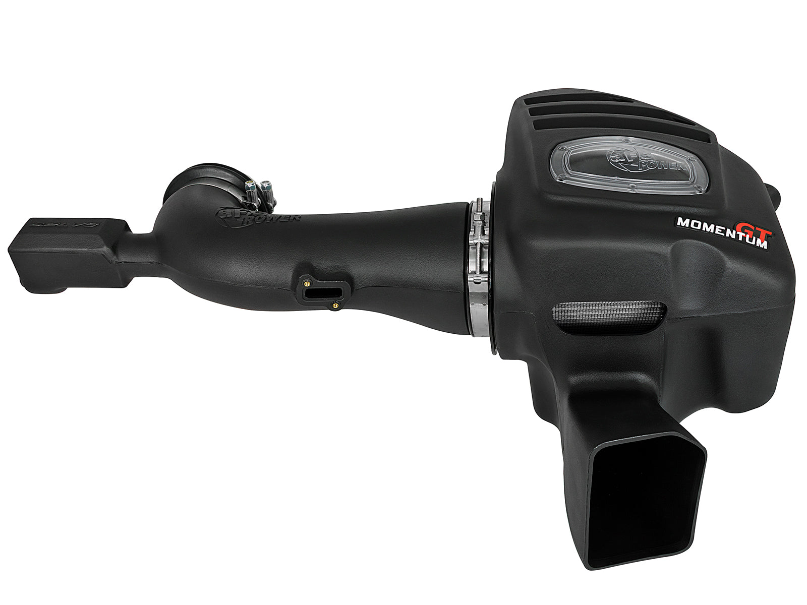 Momentum GT Cold Air Intake System w/ Pro DRY S Filter Momentum GT Cold Air Intake System w/ Pro DRY S Filter Chevrolet Camaro SS 13-15 V8-6.2L (sc) Unique One-Piece High Quality Housing W/ Sight Window: A custom CAD designed roto-molded housing made from heat soak resistant material eliminates the use of multiple components and ensures the coolest air intake charge available. A large clear sight window allows for filter inspection without removal of the air box. The roto-molded housing is made out of black cross-linked polyethylene. A urethane plug is also included if you wish to completely seal the auxiliary air inlet. High Quality Tube: This system uses a high quality plastic CAD designed, dyno-tuned, roto-molded intake tube to achieve maximum power gains while maintaining a perfect fit. This tube has a built-in resonance chamber to catch un-wanted air intake noises. Large 3-Layer Performance Air Filter: This Momentum GT intake system was designed around the largest filter possible to allow maximum performance and filtratio n. This cylindrical filter has a large oval (6-3/4" x 4-3/4") flange and is 7" tall inverted top Pro DRY S filter media. The Pro DRY S performance air filter features 3-layers of progressive finer porosity synthetic media providing maximum convenience with 100% polyurethane frame for long life and multiple cleaning cycles. Premium Hardware: Premium stainless steel T-bolt clamps and a bellow silicone coupling are used for strength and durability while also providing the most secure installation available. Momentum intakes are designed with fewer parts for a quick and simple installation. Outflows Factory Intake By 19% High Quality 1-Piece Roto-Molded Sealed Housing w/Aux. Air Inlet CAD-Designed Roto-Molded Intake Tube w/Resonance Chamber Built In Sight Window Provides Easy Inspection Of Filter Washable And Reusable Filter For Maximum Performance Unique Filter-To-Housing Interface For Easy Servicing Fits w/Electric Steering Models No Cutting Or Drilling On Factory Parts For Faster Installation