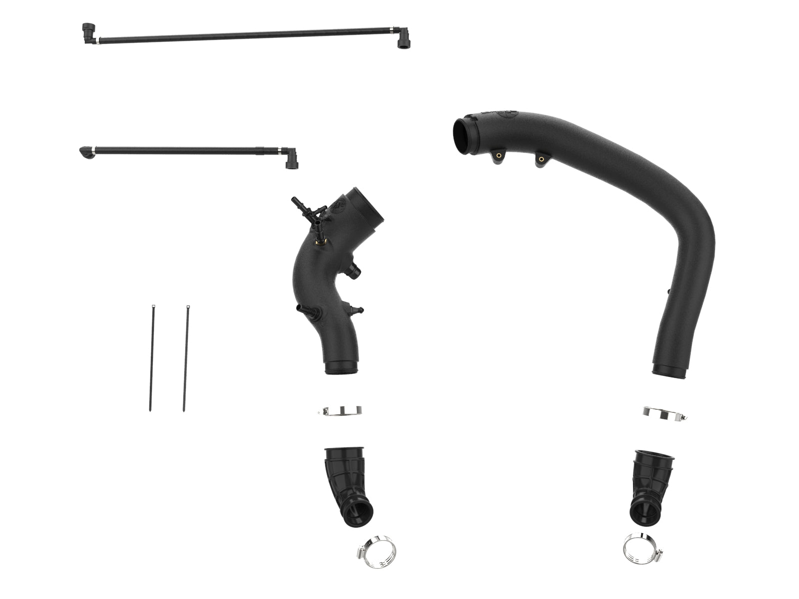 Turbo Inlet Pipes Turbo Inlet Pipes Ford F-150 Raptor 17-20 V6-3.5L (tt) These turbo inlets are the perfect addition to any aFe POWER air intake. They remove the air flow restriction of the factory turbo inlets and guarantee maximum air flow to the turbos for maximum power. They provide a smooth transition for the air from the air intake system to the turbos with minimum restriction. This system is precisely designed on CAD software for perfect fitment and maximize the air flow path to the turbos. The tubes are constructed of high-quality cross-linked polyethylene (XLPE) to resist heat and impact. Stainless steel rings are pressed in the tube ends to protect the tubes from collapsing under pressure and heat. Silicone couplings are reinforced with molded ribs offering heat resistance and excellent protection against wear and deterioration, and mate directly to the turbos. Stainless steel clamps are also provided to guarantee perfect seal years after years. aFe POWER engineers spent countless hours and created multiple 3D printed prototypes to guarantee perfect fitment while producing maximum power. Each iteration has been tested on our in-house dyno alongside extensive road testing both on the street and off-road, to make certain these turbo inlet tubes will perform in any situation. This kit comes with all necessary fittings pre-installed on the tubes for a fast and easy installation. All factory connections are maintained to ensure your truck runs perfectly. These turbo inlets works perfectly with all aFe POWER air intake systems as well as the factory air intake system. Improves Air Flow To The Turbos For Maximum Power Durable XLPE Polymer Construction is Heat and Impact Resistant Black Silicone Reinforced Couplings Connects To Factory Turbos Direct Fit Install with No Modifications Required Fits with All aFe POWER Air Intake As Well As With Factory