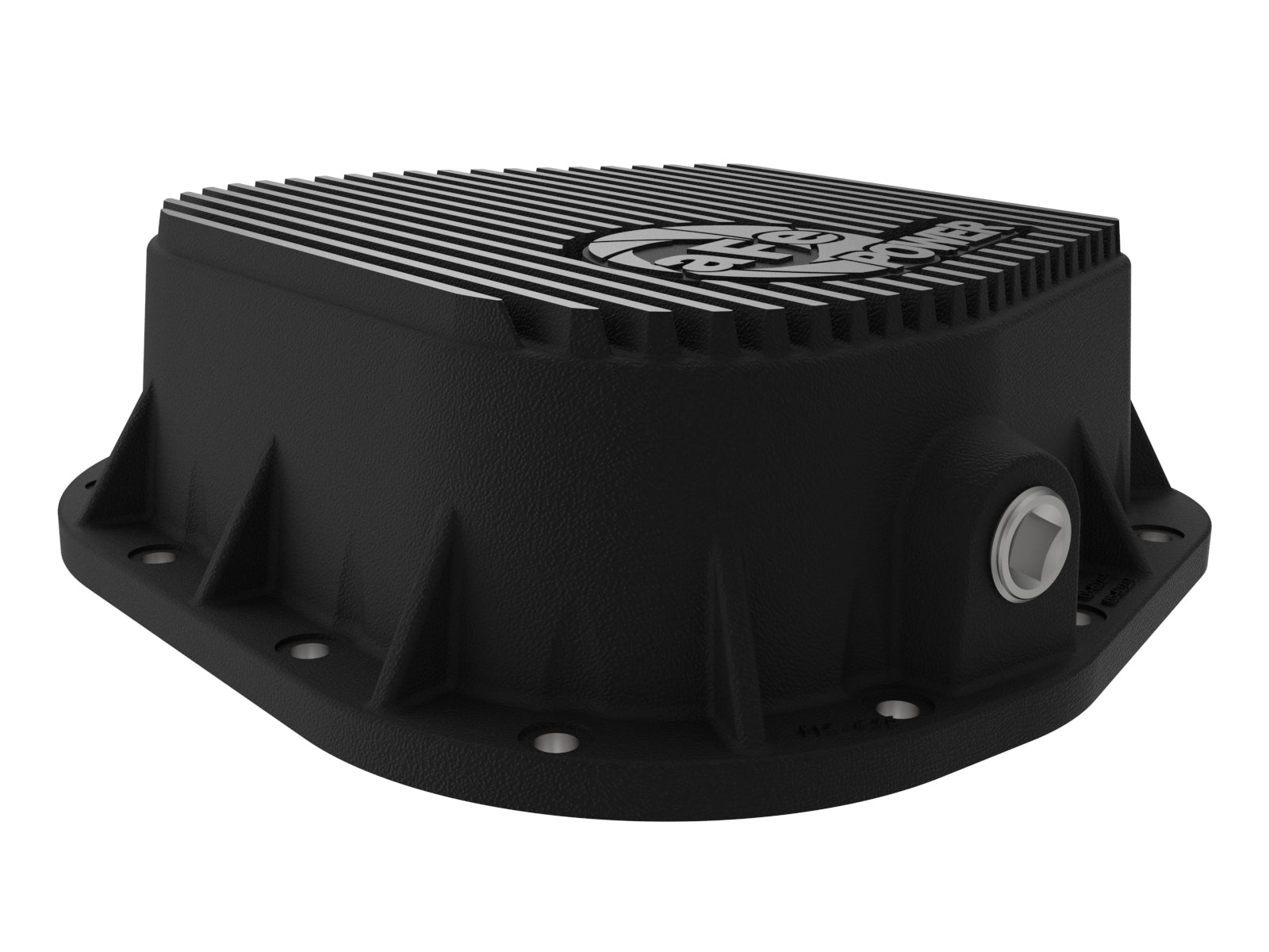 aFe POWER Pro Series Differential Cover Black w/ Machined Fins & Gear Oil aFe POWER Pro Series Differential Cover Black w/ Machined Fins & Gear Oil Ford F-150 97-23 (9.75-12) The supplied gear oil (4 quarts) exceeds the performance requirements of API GL-5 recommended for both open and limited slip applications. This cover has an increased oil capacity over stock for better performance over a longer duration. Built-in internal and external fins transfer heat from the oil to the outside air for maximum cooling. This cover incorporates a magnetic drain and deep reach fill plug to capture loose particles for maximum protection. A calibration plug is set to the factory oil level to prevent overfilling. Included oil level sight glass allows quick and easy oil inspection. Constructed out of Durable Cast Aluminum Black Powder Coat with Machined Fins Dual Neodymium Magnetic Plugs are Used for Maximum Gear Protection Large Oil Level Sight Glass and Calibration Plug Set to the Factory Oil Level Prevents Overfilling Includes 4 Quarts PRO Guard D2 Synthetic 75W-90 Oil