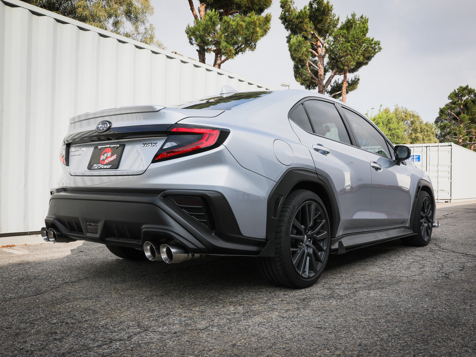 Takeda 3 IN to 2-1/2 IN 304 Stainless Steel Cat-Back Exhaust System w/Polish Tip Takeda 3 IN to 2-1/2 IN 304 Stainless Steel Cat-Back Exhaust System w/Polish Tip Subaru WRX 22-25 H4-2.4L (t) This cat-back exhaust system is constructed of 3 IN - 2-1/2 IN mandrel-bent brushed finished 304 stainless steel tubing for maximum strength and durability. Finishing off this exhaust system are dual 4 IN diameter polished 304 stainless steel exhaust tips. The tips features a laser etched Takeda logo for a unique style. This system produces a deep sound unleashing all available horsepower and torque. Utilizing a factory style flange and hangers this system is a direct bolt-on system, which requires no cutting or modifications for a hassle-free installation. State-of-the-art computer-aided design technology is utilized for precise vehicle fitment. 100% TIG-Welded for race-proven strength and durability. Constructed from 3 IN - 2-1/2 IN Mandrel-Bent Brushed Finished 304 Stainless Steel Tubing Dual 4 IN Diameter Polished 304 Stainless Steel Exhaust Tips Utilizes Factory Style Flange and Hangers for a Secure Fit 100% TIG-Welded for Strength and Durability