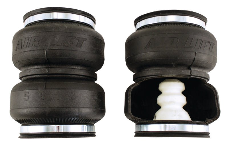 LoadLifter 5000 ULTIMATE adjustable air spring kits feature all of the benefits of our heaviest rated air spring with the addition of an internal jounce bumper inside the spring for the ultimate in ride comfort. An Air Lift exclusive product! Fits vehicles with in-bed hitches.Tow and haul the heaviest loads with safety and comfort with LoadLifter 5000 ULTIMATE. Works with vehicle's leaf springs to provide up to 5,000 lbs. of rear load leveling capacity and keeps the vehicle riding stable, level and comfortable whether loaded or unloaded. Fully adjustable from 5 to 100 PSI.The closed-cell urethane foam jounce bumper inside the ULTIMATE air springs provide a cushion of air that absorbs shock, eliminates harsh jarring on rough roads and protects vehicles carrying heavy loads. Never bottom out again with the ULTIMATE!LoadLifter 5000 ULTIMATE air springs are maintenance free! Safely run with zero air pressure because of the internal jounce bumper. Replaces factory jounce bumper that is sometimes removed when adding air springs.Easy to install in less than 2 hours. Requires no drilling into frame!Includes industry-exclusive 60 Day No Questions Money Back Guarantee! Includes the most comprehensive Lifetime Warranty in the industry, covers all kit contents including brackets, fittings and air line.Air springs are built like a tire and are reinforced by durable, 2-ply fabric for maximum strength.Exclusive upper and lower roll plates included. Protect the springs from sharp edges, such as brackets or the frame. They increase load capacity up to 10%.The kit includes 2 air springs, brackets, air lines, Schrader valve and all of the hardware needed for installation. Includes fully illustrated instruction manual.Add an Air Lift on-board air compressor system to inflate and deflate air springs with the touch of a button from inside or outside of the vehicle.Air Lift is a 3rd generation family owned company that has been manufacturing the highest quality suspension products.