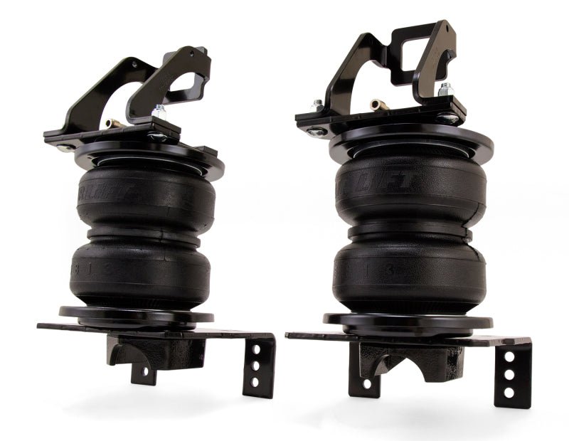 LoadLifter 5000 ULTIMATE adjustable air spring kits feature all of the benefits of our heaviest rated air spring with the addition of an internal jounce bumper inside the spring for the ultimate in ride comfort. An Air Lift exclusive product! Fits vehicles with in-bed hitches. Tow and haul the heaviest loads with safety and comfort with LoadLifter 5000 ULTIMATE. Works with vehicle's leaf springs to provide up to 5,000 lbs. of rear load leveling capacity and keeps the vehicle riding stable, level and comfortable whether loaded or unloaded. Fully adjustable from 5 to 100 PSI. The closed-cell urethane foam jounce bumper inside the ULTIMATE air springs provide a cushion of air that absorbs shock, eliminates harsh jarring on rough roads and protects vehicles carrying heavy loads. Never bottom out again with the ULTIMATE! LoadLifter 5000 ULTIMATE air springs are maintenance free! Safely run with zero air pressure because of the internal jounce bumper. Replaces factory jounce bumper that is sometimes removed when adding air springs. Easy to install in less than 2 hours. Requires no drilling into frame! Includes industry-exclusive 60 Day No Questions Money Back Guarantee! Includes the most comprehensive Lifetime Warranty in the industry---covers all kit contents including brackets, fittings and air line. Air springs are built like a tire and are reinforced by durable, 2-ply fabric for maximum strength. Exclusive upper and lower roll plates included. Protect the springs from sharp edges, such as brackets or the frame. They increase load capacity up to 10%. The kit includes 2 air springs, brackets, air lines, Schrader valve and all of the hardware needed for installation. Includes fully illustrated instruction manual. Add an Air Lift on-board air compressor system to inflate and deflate air springs with the touch of a button from inside or outside of the vehicle. Air Lift is a 3rd generation family owned company that has been manufacturing the highest quali