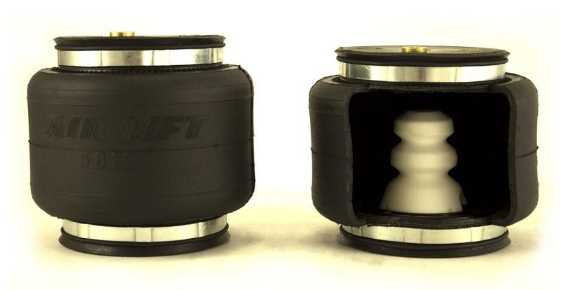 LoadLifter 5000 ULTIMATE adjustable air spring kits feature all of the benefits of our heaviest rated air spring with the addition of an internal jounce bumper inside the spring for the ultimate in ride comfort. An Air Lift exclusive product! Fits vehicles with in-bed hitches. Tow and haul the heaviest loads with safety and comfort with LoadLifter 5000 ULTIMATE. Works with vehicle's leaf springs to provide up to 5,000 lbs. of front load leveling capacity and keeps the vehicle riding stable, level and comfortable whether loaded or unloaded. Fully adjustable from 5 to 100 PSI. The closed-cell urethane foam jounce bumper inside the Ultimate air springs provide a cushion of air that absorbs shock, eliminates harsh jarring on rough roads and protects vehicles carrying heavy loads. Never bottom out again with the ULTIMATE! LoadLifter 5000 ULTIMATE air springs are maintenance free! Safely run with zero air pressure because of the internal jounce bumper. Replaces factory jounce bumper that is sometimes removed when adding air springs. Easy to install in less than 2 hours. Includes industry-exclusive 60 Day No Questions Money Back Guarantee! Includes the most comprehensive Lifetime Warranty in the industry---covers all kit contents including brackets, fittings and air line. Air springs are built like a tire and are reinforced by durable, 2-ply fabric for maximum strength. Exclusive upper and lower roll plates included. Protect the springs from sharp edges, such as brackets or the frame. They increase load capacity up to 10%. The kit includes 2 air springs, brackets, air lines, Schrader valve and all of the hardware needed for installation. Includes fully illustrated instruction manual. Add an Air Lift on-board air compressor system to inflate and deflate air springs with the touch of a button from inside or outside of the vehicle. Air Lift is a 3rd generation family owned company that has been manufacturing the highest quality suspension products in Lansi