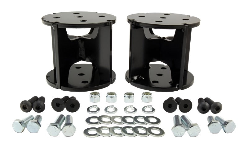 For drivers of lifted trucks, it's common to find that the towing and hauling capabilities of the stock suspension are compromised. With the new Universal Air Spring Spacers from Air Lift, drivers are now able to add a load support solution and restore the full potential of the vehicle. Available in 4" straight, 6" straight, 4" angled, and 6" angled varieties, the Universal Air Spring Spacers are designed to accommodate most lift kits, up to six inches. These high-quality, " steel spacers are rated to handle more than 10 tons of force, making them tough enough to handle even the heaviest loads. With a unique spinal design, the spacers are easy to attach to bellows-style air spring systems, including Air Lift's best-selling LoadLifter 5000 series and LoadLifter 7500 XL, using the provided hardware. With air springs equipped, drivers of lifted vehicles will find that the towing and hauling capabilities of their vehicles are restored. Adding air springs will eliminate many common issues faced when towing and hauling heavy loads, including squat, poor headlight aim, trailer sway, and bottoming out. Drivers and passengers alike will notice that handling, ride quality, and braking power are all greatly improved. Each Universal Air Spring Spacer kit comes with a clear, easy-to-follow, fully illustrated instruction manual to make the installation process easy clear and simple. As the leader in air suspension products for more than 65 years, Air Lift is committed to delivering quality load support parts that last. The key suspension components have all been torture-tested to ensure the highest quality, longevity, and customer satisfaction. With a limited-lifetime warranty, you can purchase this kit with peace of mind. Take your existing air suspension solution to the next level of safety and comfort with Universal Air Spring Spacers today!