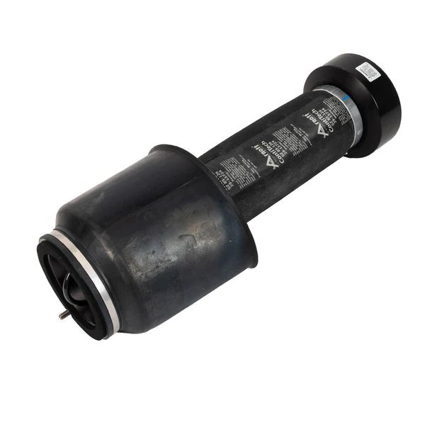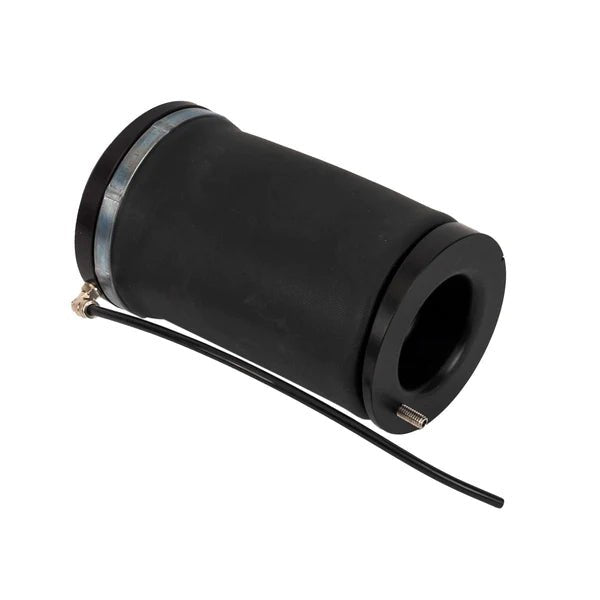 Air springs are used to support vehicles instead of coil springs. This is not the same as helper air springs that assist the coil spring suspension. With helper springs, the ride can be rougher due to the added spring force, but that's not an issue with a dedicated air spring. A vehicle's air spring is made up of a rubber sleeve, a metal piston, and a body mount, which are filled with pressurized air. When the suspension articulates, the sleeve rolls over the piston for a smooth and comfortable ride. Like a tire, the sleeve is very resistant to wear and punctures. The sleeve is attached to the piston and body by crimp rings. There are also some air springs with internal bump stops. The body mounts fix the spring to the vehicle, but like coil springs, suspension travel must be limited by either the shock absorber or limit straps. Air can be added to or removed from the spring to control the vehicle's posture, unlike traditional coil springs, which have a fixed height and settle over time. You don't have to guess about spring lengths or rates to get the right height for your Jeep.