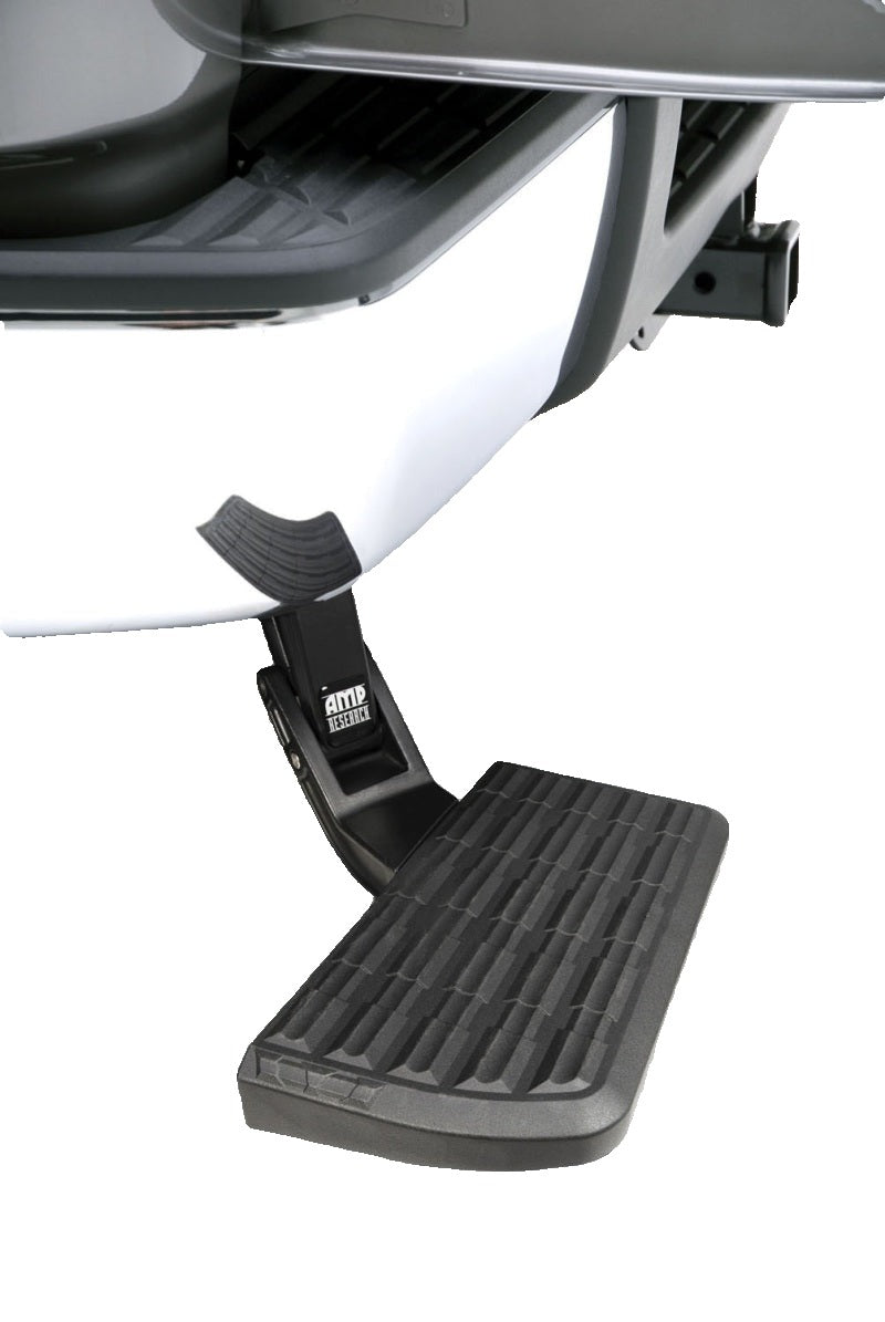Go ahead and step on it. Bedstep is a real time saver. Not to mention knee and back saver. Strong and rugged, this non-slip, retractable bumper step quickly flips down with the nudge of a foot providing a faster, easier and safer way to load or unload your pickups cargo. Supports up to 300 lbs. Frame mounts under the rear bumper so it works even with an open tailgate or when towing.The inventor of the electric running board and bed extender categories, AMP Researchis a U.S. manufacturer of aftermarket and OE automotive accessories for trucks, Jeeps, SUVs, and Vans. The company specializes in quality products utilizing ISO/TS standards with on-site design and tooling resources. The company's motto, Innovation In Motion captures the groundbreaking mix of breakthrough products the company has brought to the market. Current products include: PowerStep, PowerStep XL, PowerStep Xtreme, BedStep, BedStep2, and BedXtender HD.
