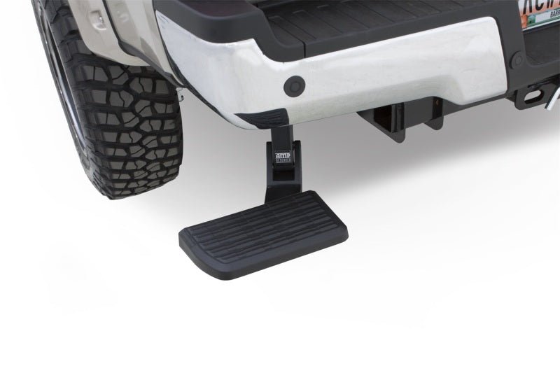 Go ahead and step on it. Bedstep is a real time saver. Not to mention knee and back saver. Strong and rugged, this non-slip, retractable bumper step quickly flips down with the nudge of a foot providing a faster, easier and safer way to load or unload your pickups cargo. Supports up to 300 lbs. Frame mounts under the rear bumper so it works even with an open tailgate or when towing.The inventor of the electric running board and bed extender categories, AMP Researchis a U.S. manufacturer of aftermarket and OE automotive accessories for trucks, Jeeps, SUVs, and Vans. The company specializes in quality products utilizing ISO/TS standards with on-site design and tooling resources. The company's motto, Innovation In Motion captures the groundbreaking mix of breakthrough products the company has brought to the market. Current products include: PowerStep, PowerStep XL, PowerStep Xtreme, BedStep, BedStep2, and BedXtender HD.