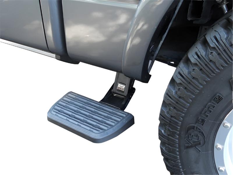 Side steps for hard-working trucks. The AMP Research Bedstep2 mounts just behind the cab, forward of the rear wheel, providing a faster, easier and safer route to access toolboxes, equipment and cargo in the bed. Easily installed, this frame-mounted, retractable truck step can be mounted on either side of the truck box, and it flips down or retracts with just the nudge of your foot.The inventor of the electric running board and bed extender categories, AMP Researchis a U.S. manufacturer of aftermarket and OE automotive accessories for trucks, Jeeps, SUVs, and Vans. The company specializes in quality products utilizing ISO/TS standards with on-site design and tooling resources. The company's motto, Innovation In Motion captures the groundbreaking mix of breakthrough products the company has brought to the market. Current products include: PowerStep, PowerStep XL, PowerStep Xtreme, BedStep, BedStep2, and BedXtender HD.