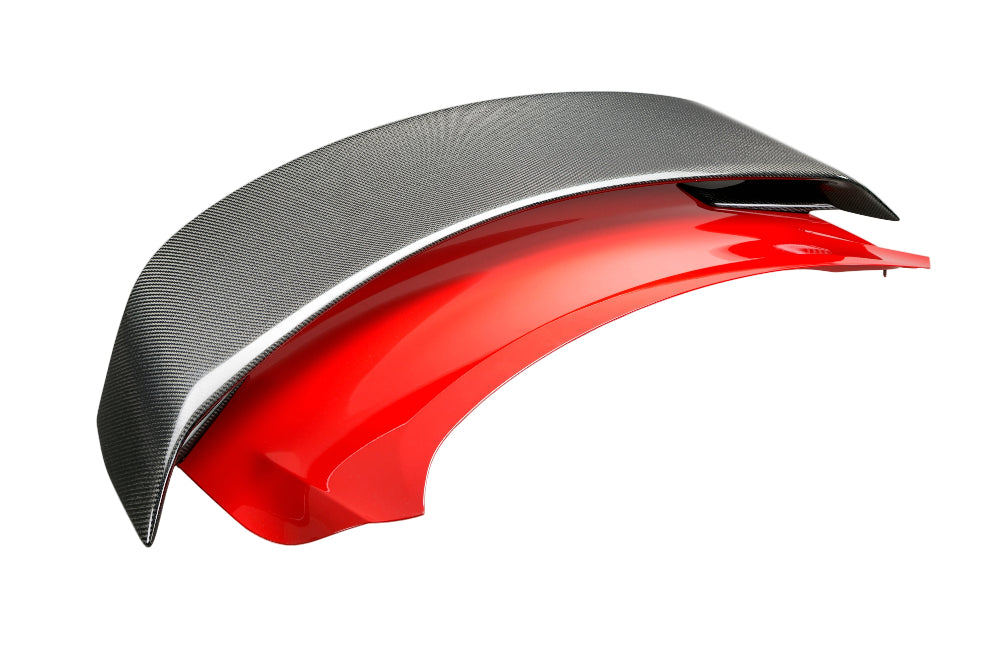 Authentic GT350R-style carbon fiber spoiler offering lightweight construction, aggressive track design, and OEM-level fitment.