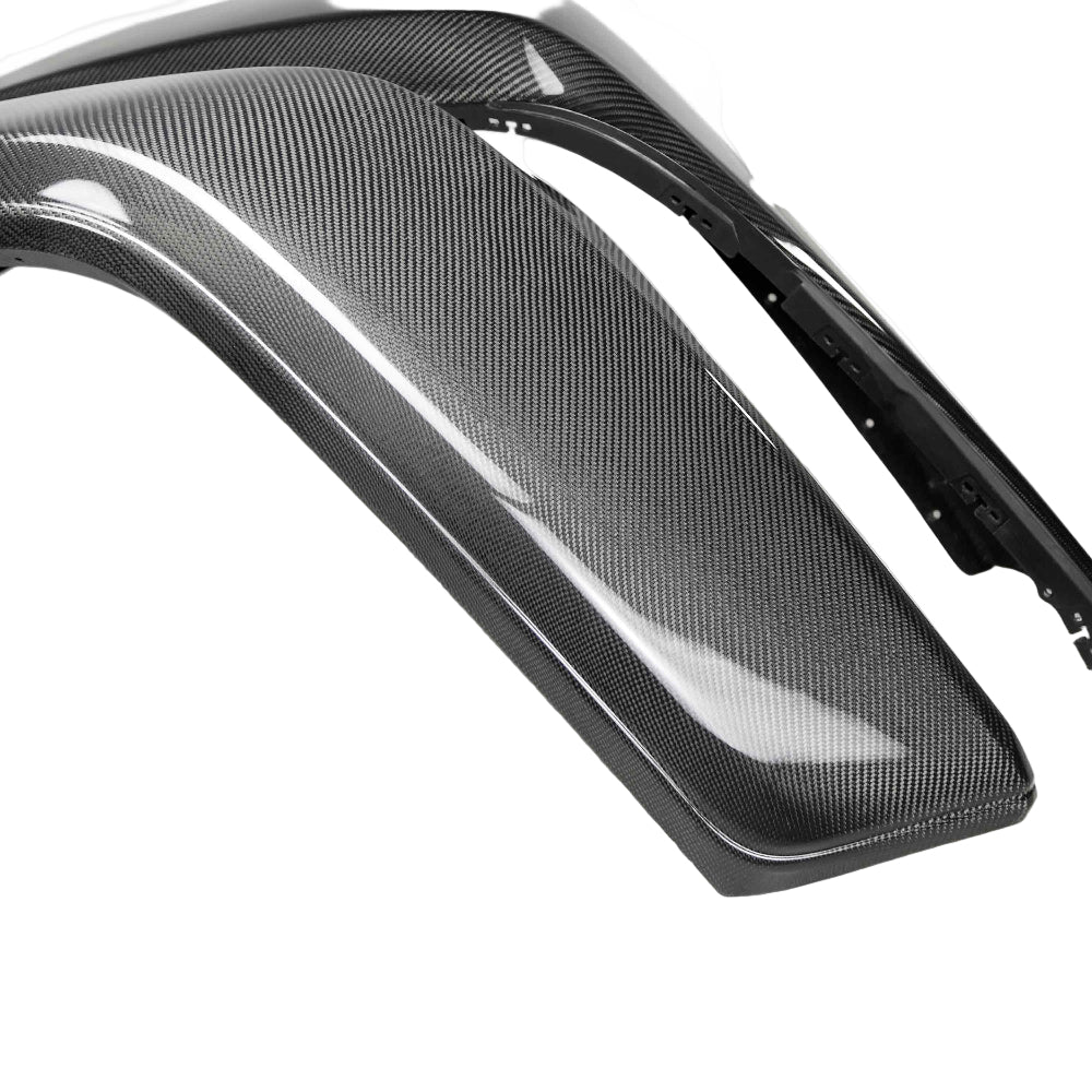 Each flare is built using a vacuum-infused 3K, 2x2 twill carbon fiber process for superior strength, weight savings, and weave consistency. The high-gloss marine-grade gel coat finish features UV inhibitors to protect against fading and maintain a deep, glossy carbon appearance even in harsh conditions.