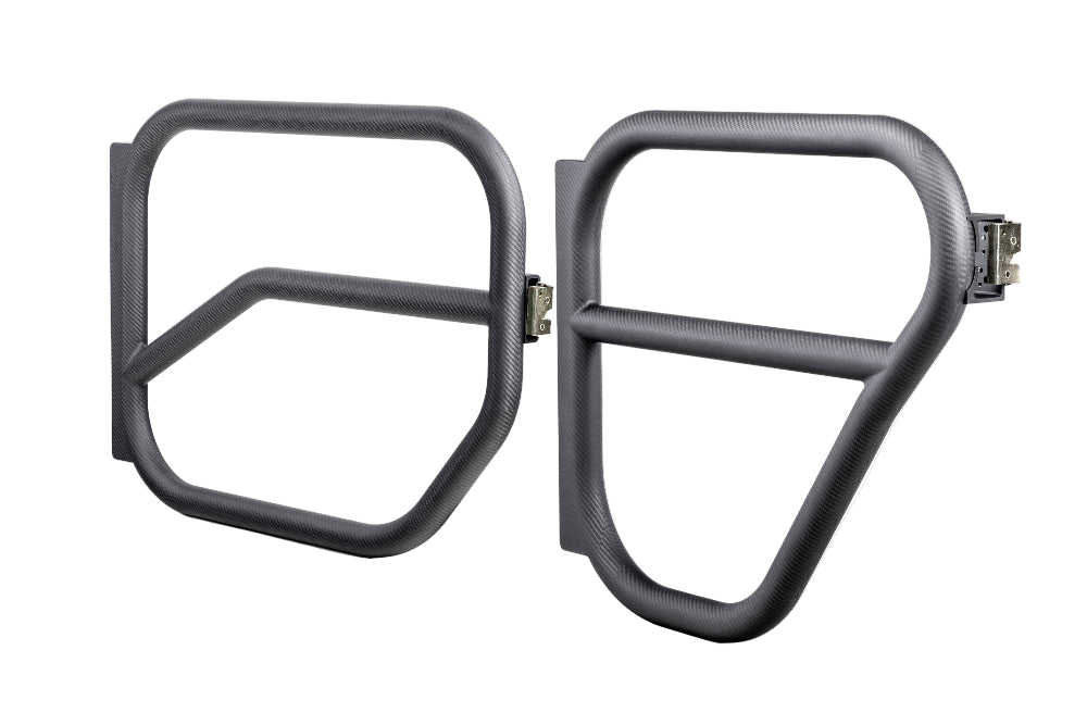 Lightweight dry carbon tube doors engineered for strength, visibility, and aggressive open-air styling.