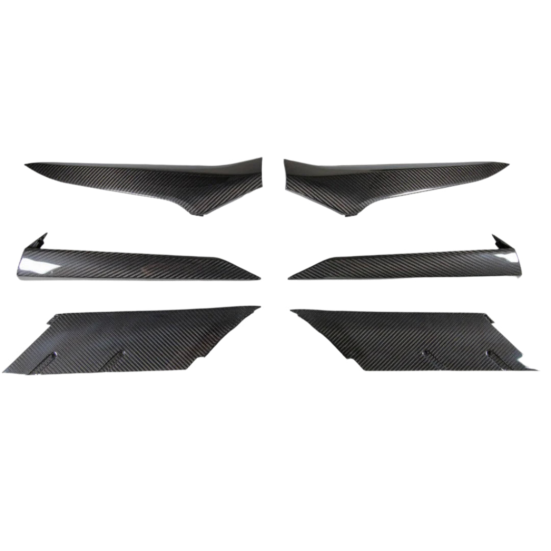Dress-up the exterior with carbon fiber, molded to precise dimensions that only pre-preg. materials can achieve. These parts are exotic-looking, race-inspired, and are unmatched in quality. This package include total of 6 pieces.