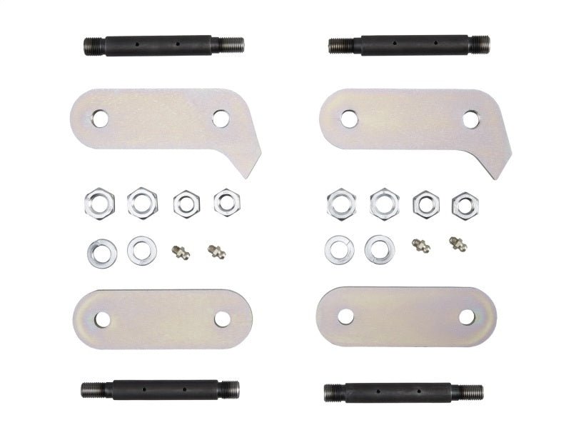 Old Man Emu - OMEGS9 - Greasable Shackle Kit: OMEGS9. Old Man Emu Greasable Shackle Kit; Rear Unique, Easy Bolt Together Assembly; Development - To ensure we meet your expectations, ARB invests heavily in research and development. Our design and engineering team utilizes the latest CAD, CAM parametric modeling systems and finite element analysis packages, and is supported by subcontract companies and universities for special projects like vibration, strength and crash testing. With an air bag equipped vehicle for example, it is essential that the vehicle?s crush rate and air bag triggering is not altered when a bull bar is installed. Our exhaustive testing programs ensure ARB bull bars meet these requirements. We also devote considerable time and resources toward to sourcing new products from around the world. IPF lights from Japan, Warn winches from the US? we scan the globe in search of equipment that meets both the demands of our customers and our own stringent quality requirements. What?s more, we?re also constantly on the lookout for new ways to improve our business practices, from distribution to customer service. ARB is a Quality Endorsed Company, and wherever we can, we endeavor to ?raise the bar?.; Allows Maximum Grease Coverage Between Shackle Pin And Spring Bushing; Increases Bushing Life And Ride Quality; Heat Treated Pins Ensure Long Life Under Heavy Loads and Off-Road Conditions; Side Plates Are Zinc-Plated to Protect Against Corrosion