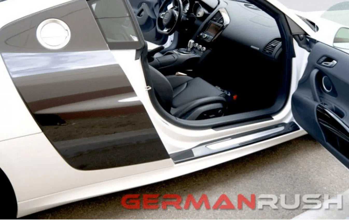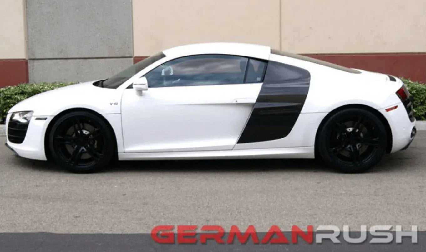 These V10 style carbon fiber side blades are made of the highest quality to fit this high-end vehicle and are a direct replacement for the OEM side blades and use the same installation points. They are vacuum formed and not hand laid for the Audi R8 V8 & V10 models and are reproduced to fit like the original part with the 2x2 carbon fiber weave finish. This product will give your Audi R8 V8 the V10 look. Guaranteed fitment