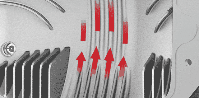 25 external radiator fins offer 677.64 square inches of surface area to ensure optimal heat rejection.