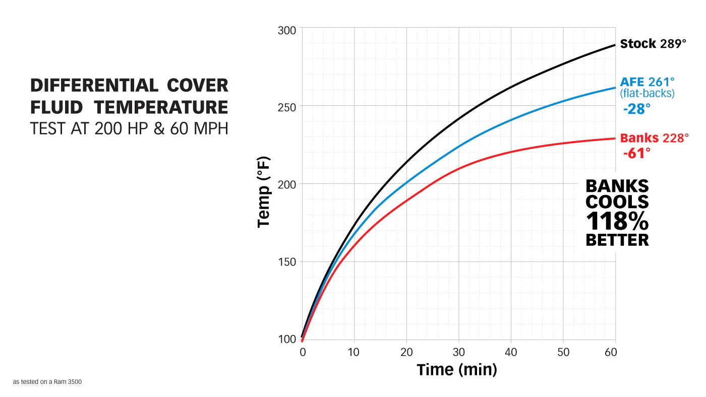 The Banks differential cover is fundamentally different from its competition because it utilizes Ram-air scoops that direct air through channeled fins, cooling the differential and internal oil temperatures.