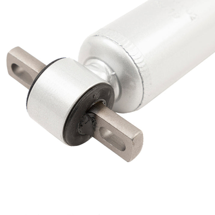Shocks features include: Metal dust boots, Hardened Chrome 15mm piston rods, Triple lip NBR rod seal, Teflon guide bushing, 35mm pistons w/ low friction Teflon seals, 51mm wide body for increased oil volume & OEM quality rubber bushings.