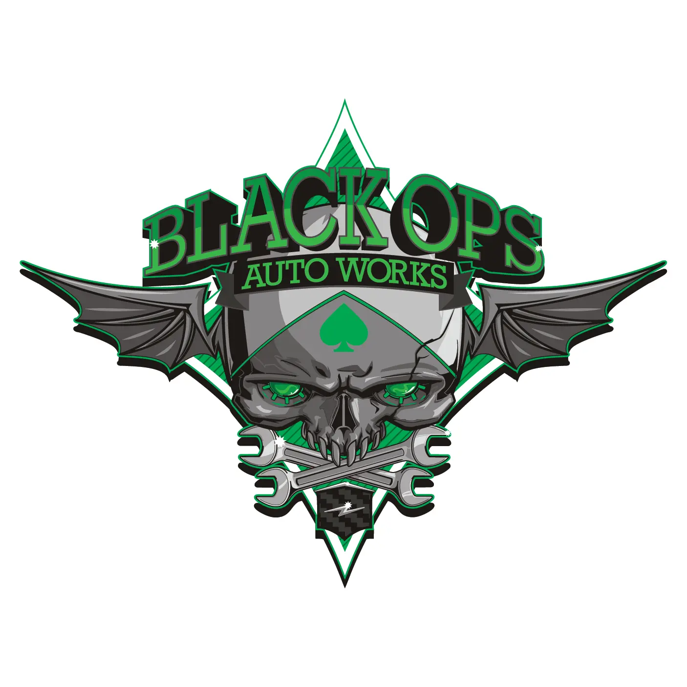 Black Ops Flyer Logo: Lime Green - Black Ops Auto Works