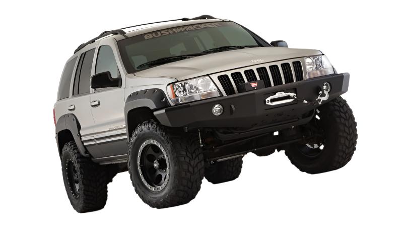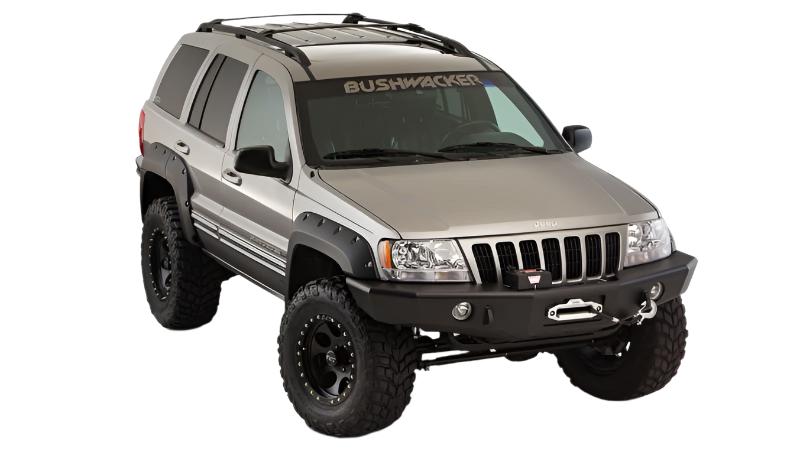 Bushwacker 10926-07 Black Jeep Cutout Style Textured Finish 4-Piece Fender Flare Set for 1999-2004 Jeep Grand Cherokee: 10926-07. Perfect for off-road vehicles that need extreme amounts of tire coverage and clearance; Tire coverage varies with vehicle: 2 In. - 3.5 In.; Made of Dura-Flex 2000 ABS material which is flexible, yet durable; 100% UV protected smooth matte black finish can be easily painted; Durable, heavy duty hardware included which holds the flares securely in place, even on the most difficult trails; Installation drilling and/or cutting required; Premium tire coverage for body protection - keeps dirt and debris off the truck; Limited Lifetime Warranty