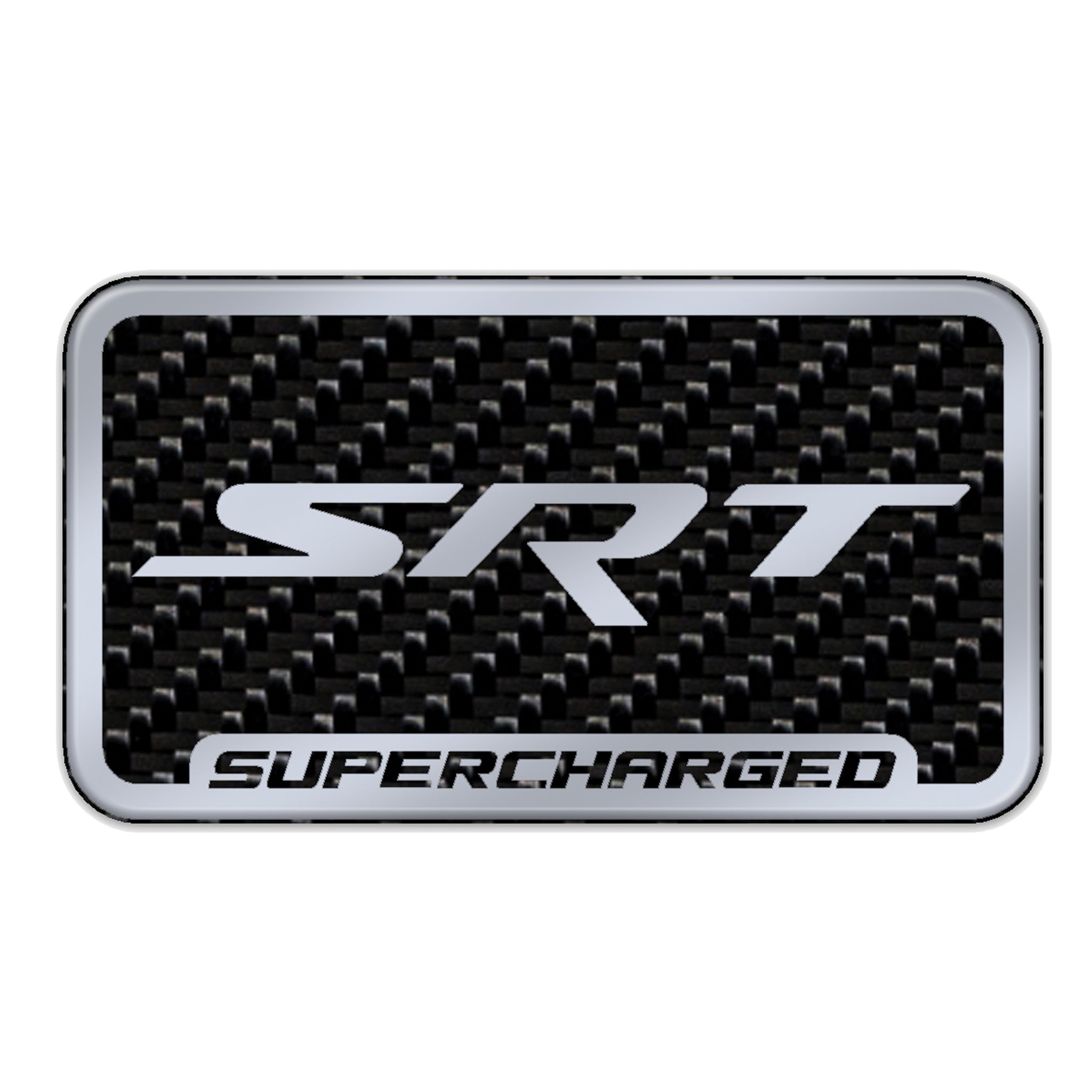 Carbon Fiber SRT Supercharger badge features genuine carbon fiber and silver accents.
