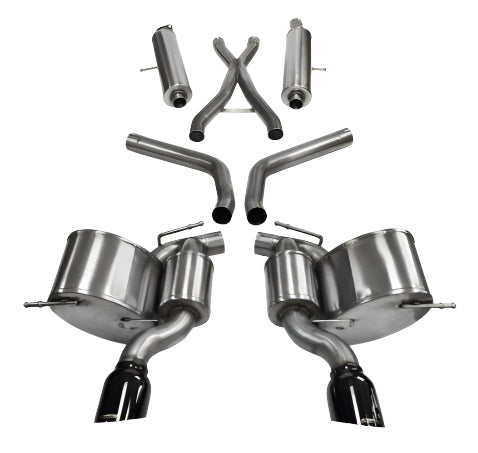 The CORSA Performance 14466BLK Sport Cat-Back Exhaust System. Engineered for enthusiasts who demand superior power, a refined yet aggressive sound, and premium craftsmanship, this exhaust delivers unmatched performance and style. With advanced technology and a focus on driver satisfaction, the 14466BLK is the definitive choice for SRT owners seeking to dominate the road. Choose CORSA and experience the best in exhaust innovation.