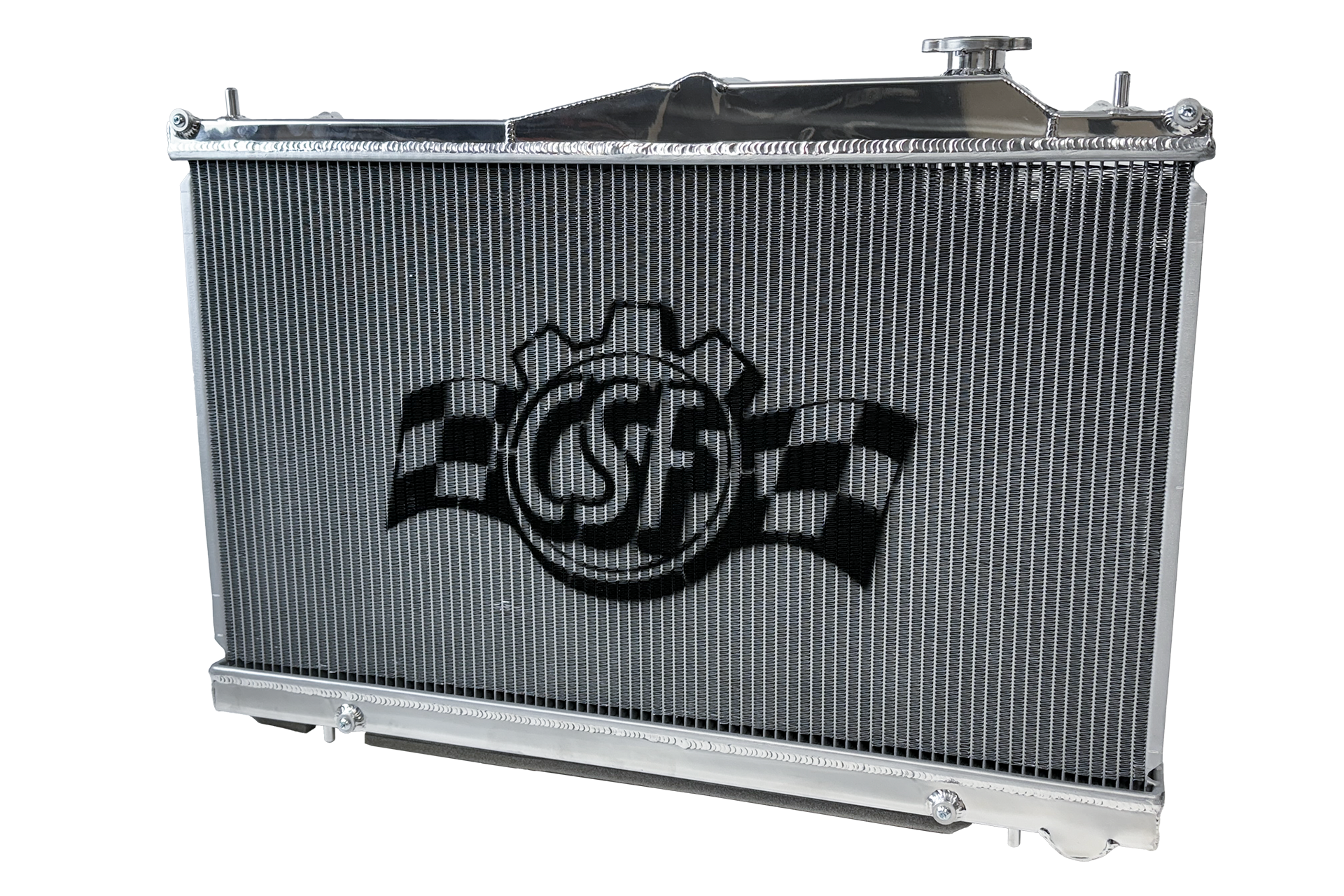 Having a High-Performance Radiator also becomes very important when converting from a factory style top mount intercooler to a front mount intercooler system. Moving the intercooler in front of the radiator restricts airflow and increases the temperature of air flowing through it. These factors are often overlooked but you need to compensate for both air restriction and higher air temperatures flowing through the radiator. The best solution is to upgrade to a CSF High-Performance Radiator.